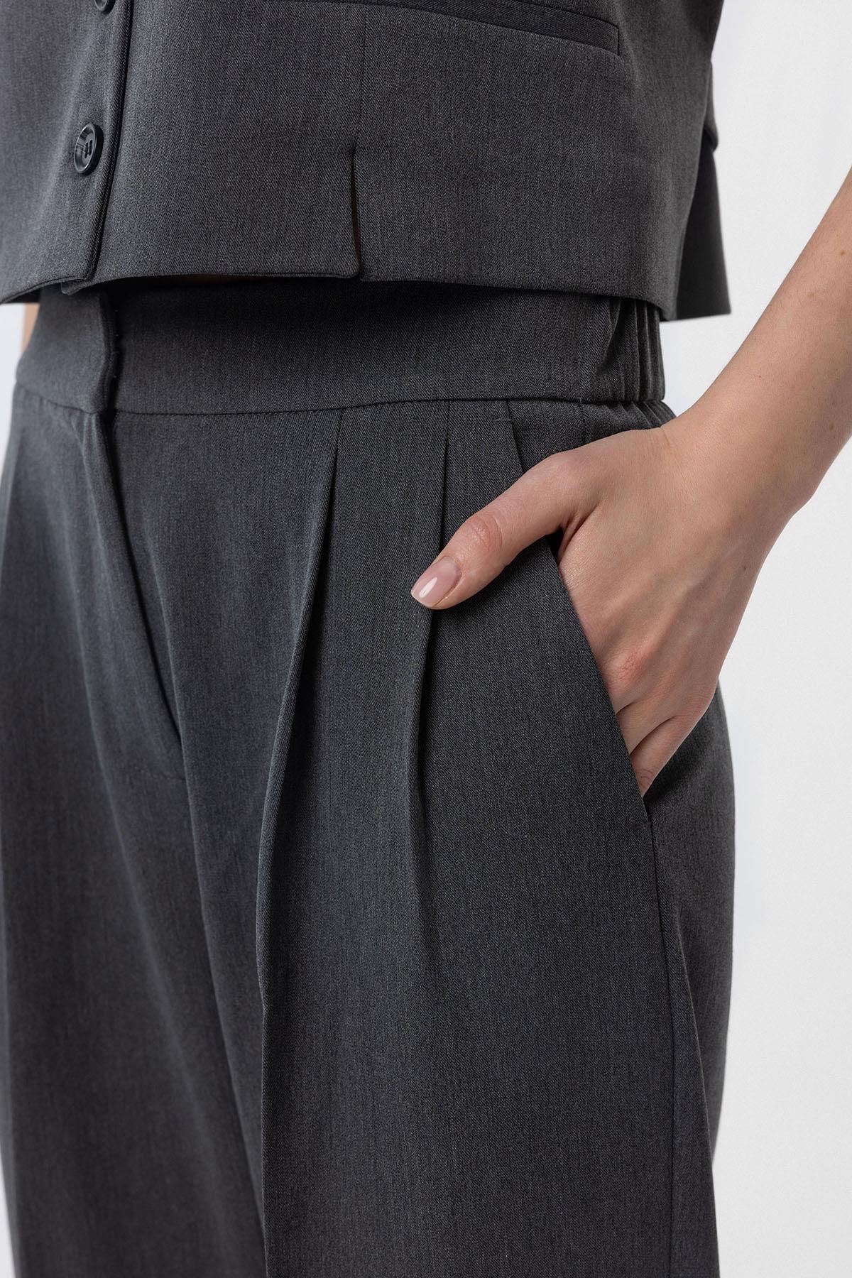 Antrasit Duble Paça Pensli Kadın Pantolon Antrasit Duble Paça Pensli Kadın Pantolon BA25Y212 L