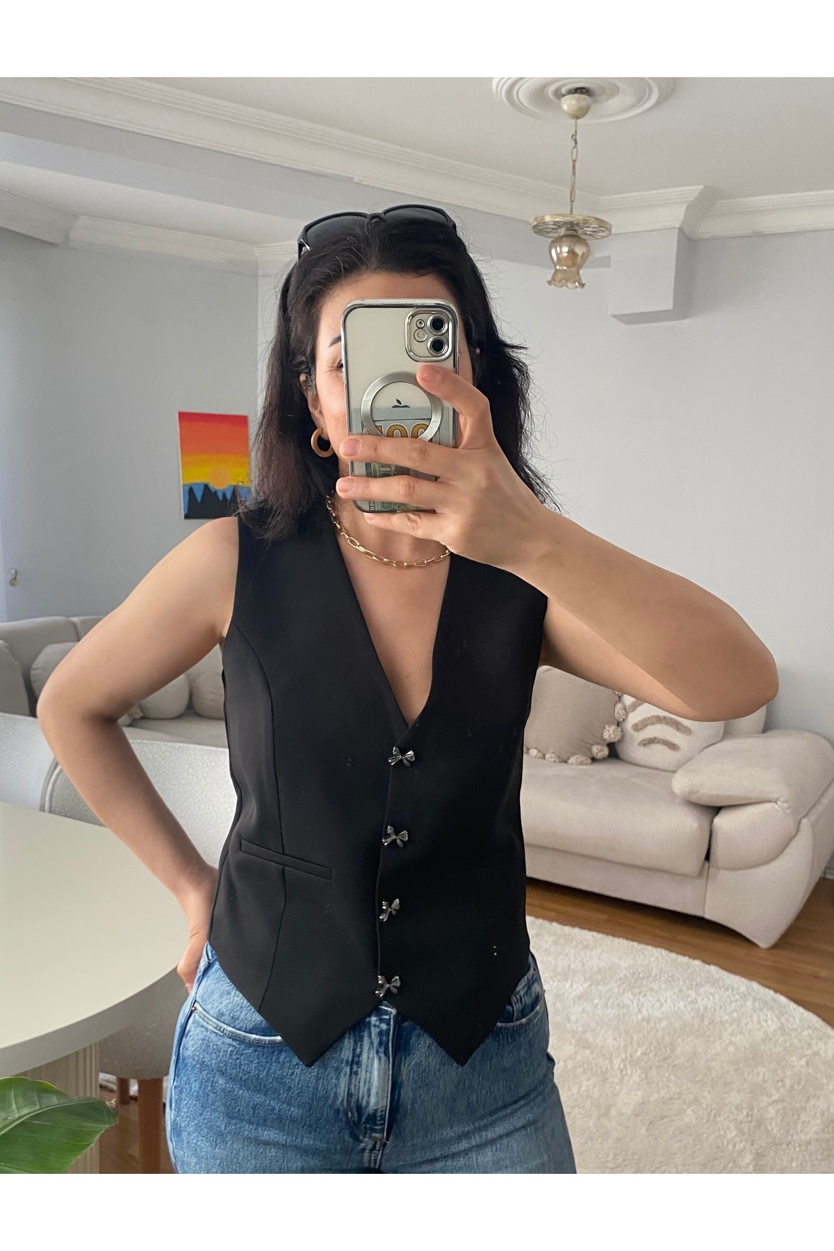 kadın fiyonk düğme detaylı süprem kumaş içi astarlı blazer yelek kadın fiyonk düğme detaylı süprem kumaş içi astarlı blazer yelek 7546 L