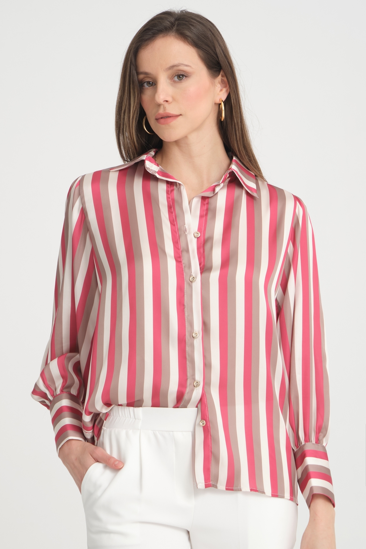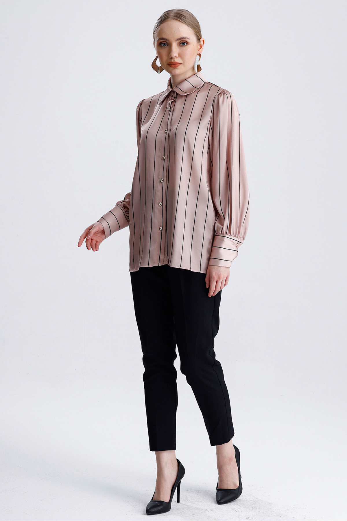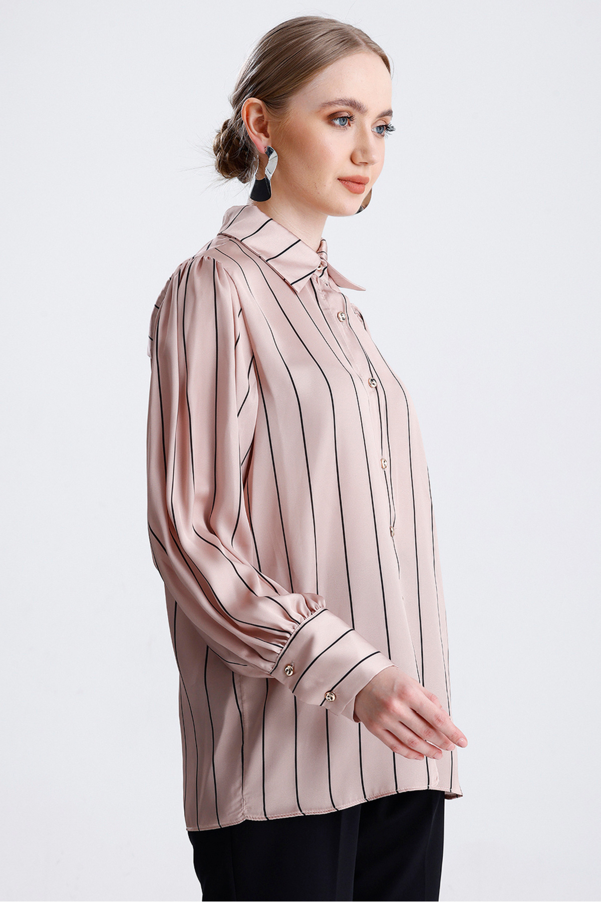 Kadın Çizgili Büzgü Detaylı Balon Kollu Oversize Saten Gömlek Kadın Çizgili Büzgü Detaylı Balon Kollu Oversize Saten Gömlek MDTRN32293 2XL