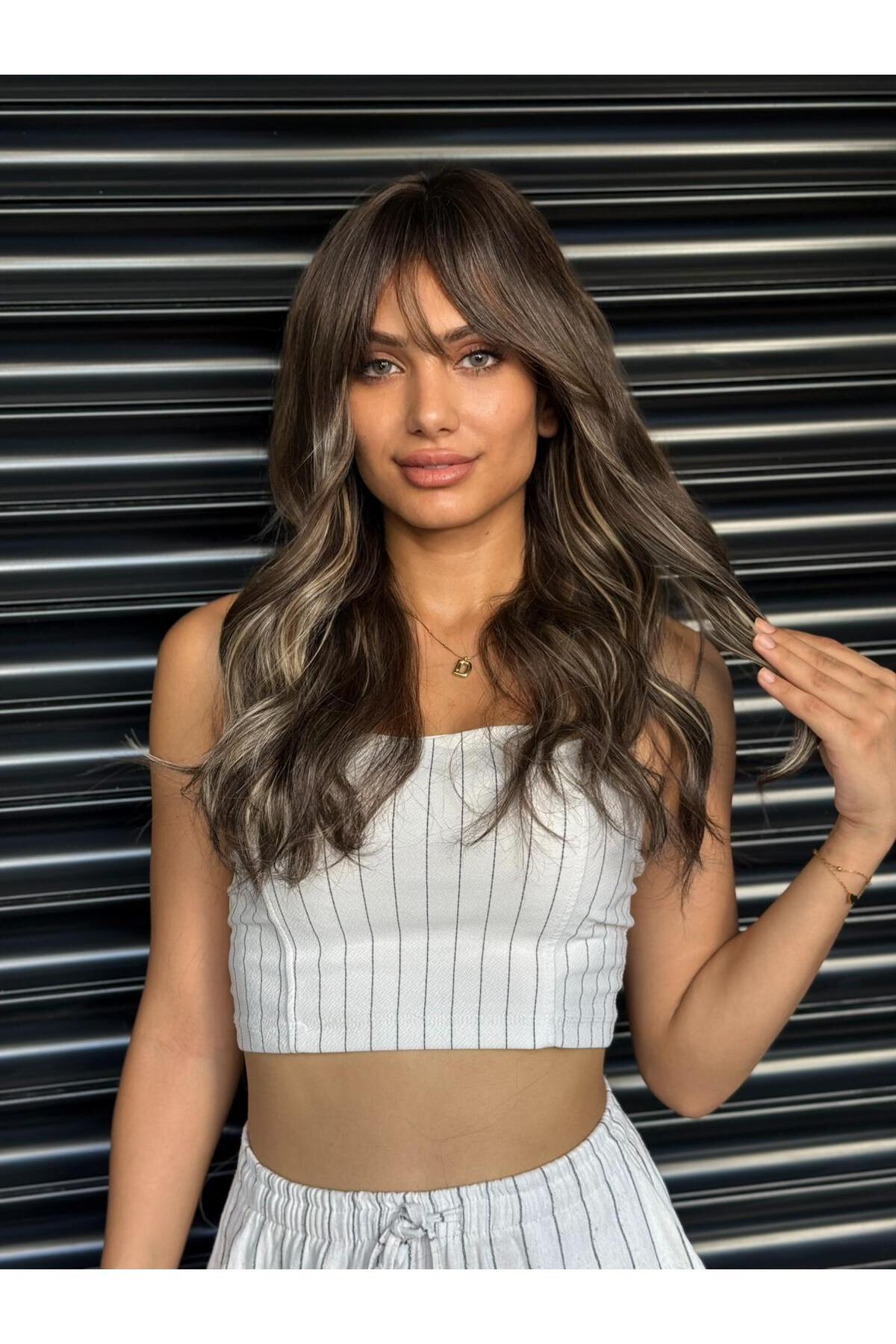 Kahve Rengi Sarı Işıltılı Vip Dalgalı Saç Peruk Kahve Rengi Sarı Işıltılı Vip Dalgalı Saç Peruk PM-12 تک سایز
