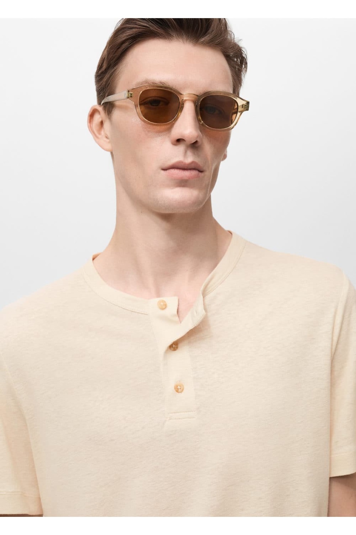 Keten karışımlı düğmeli tişört Keten karışımlı düğmeli tişört 87067888 2XL
