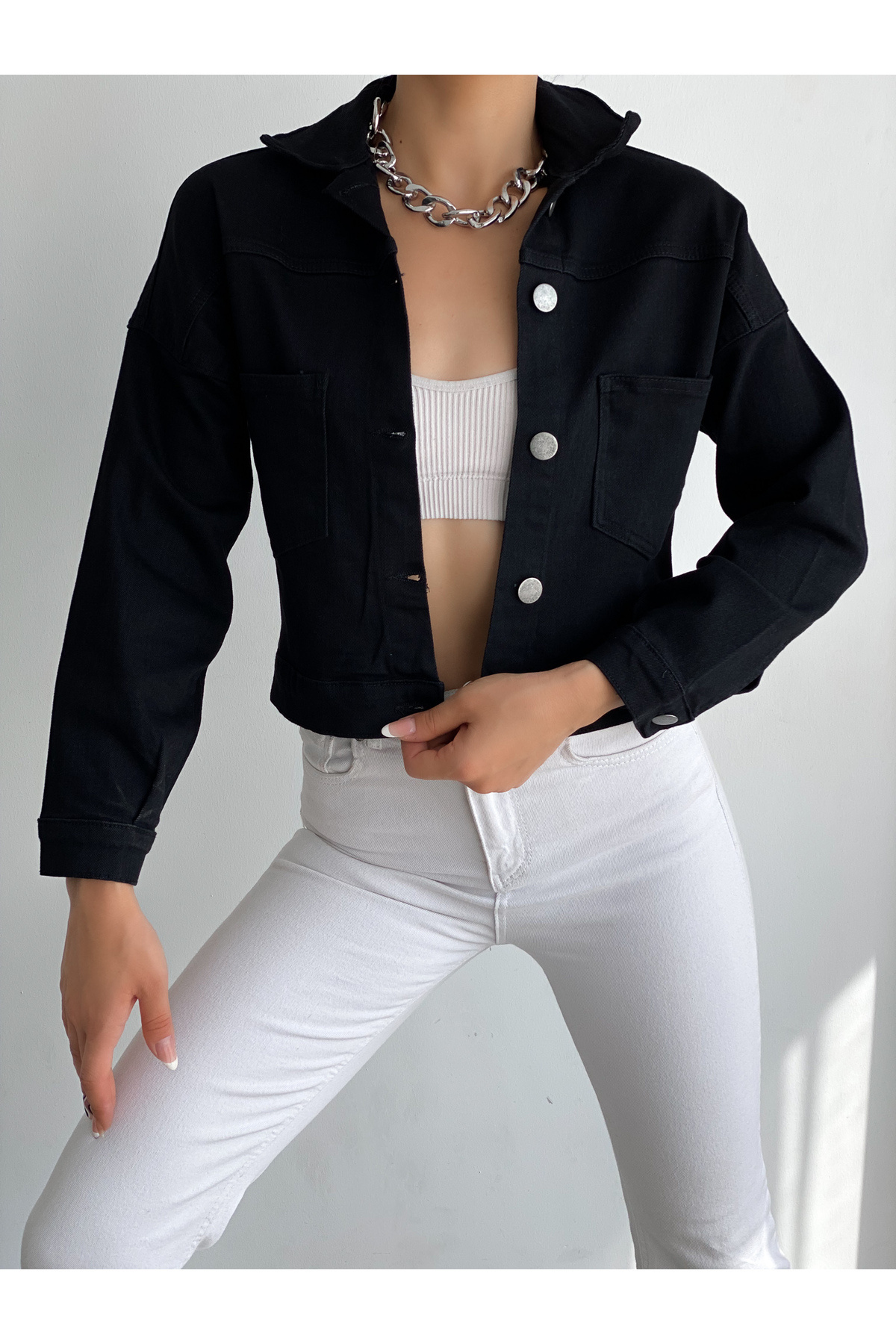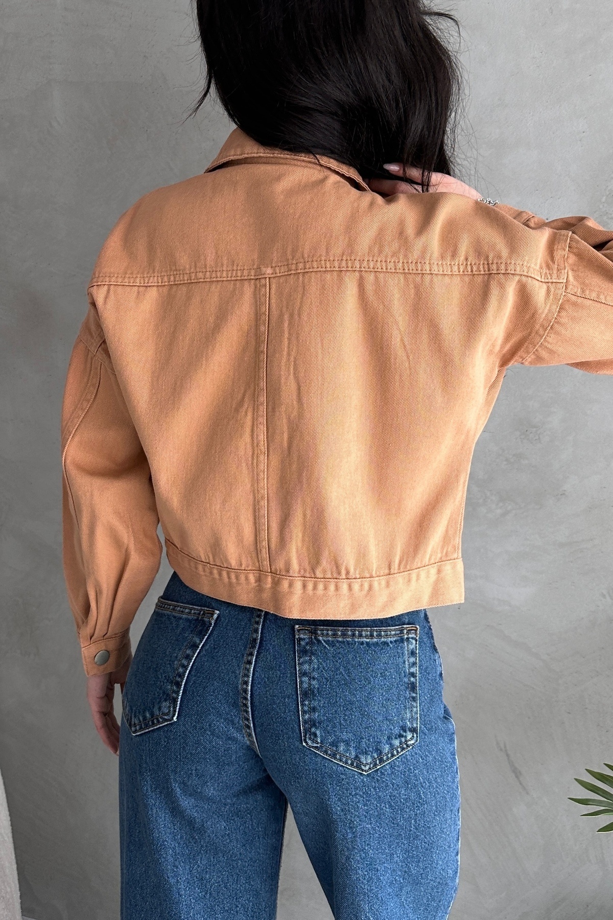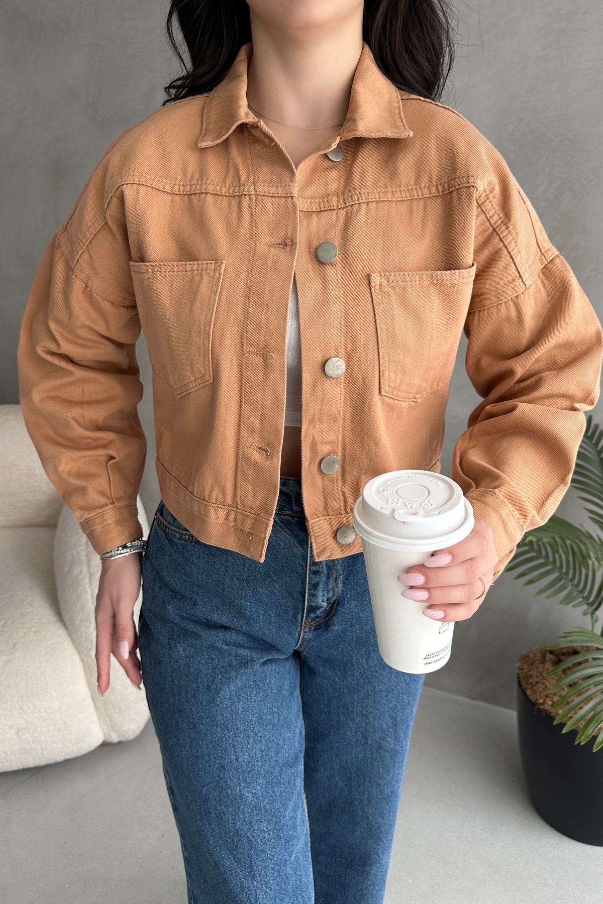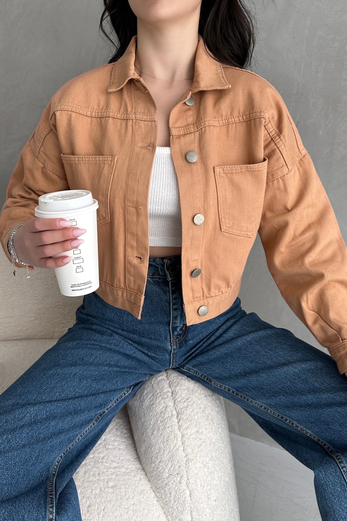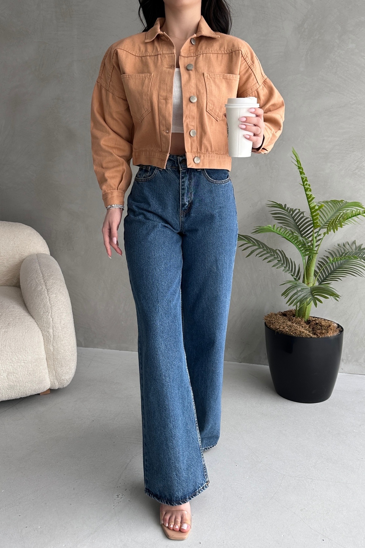 Kadın Düğmeli Çift Cepli Crop Denim Ceket Bisküvi Kadın Düğmeli Çift Cepli Crop Denim Ceket Bisküvi LBY4000 L