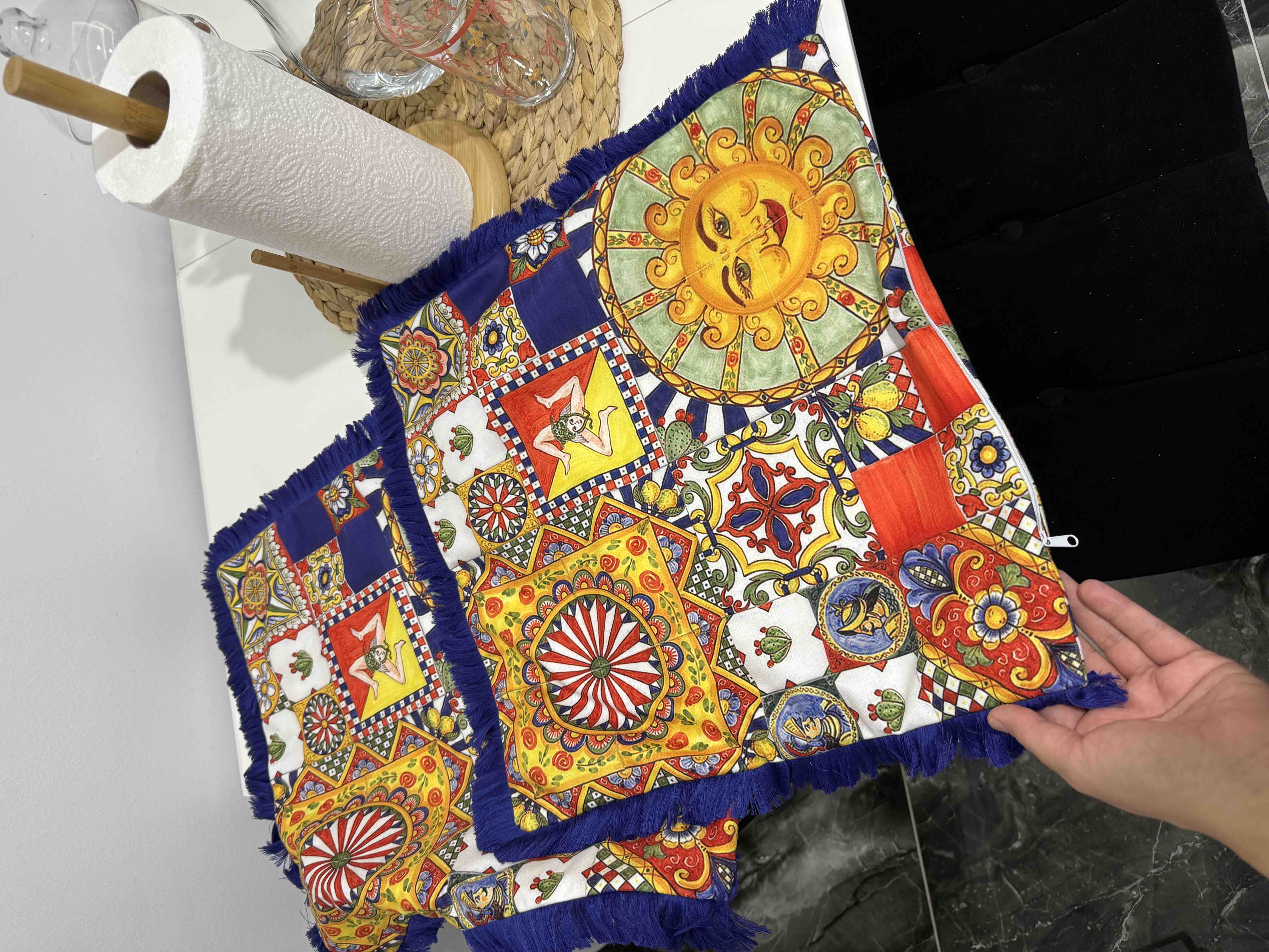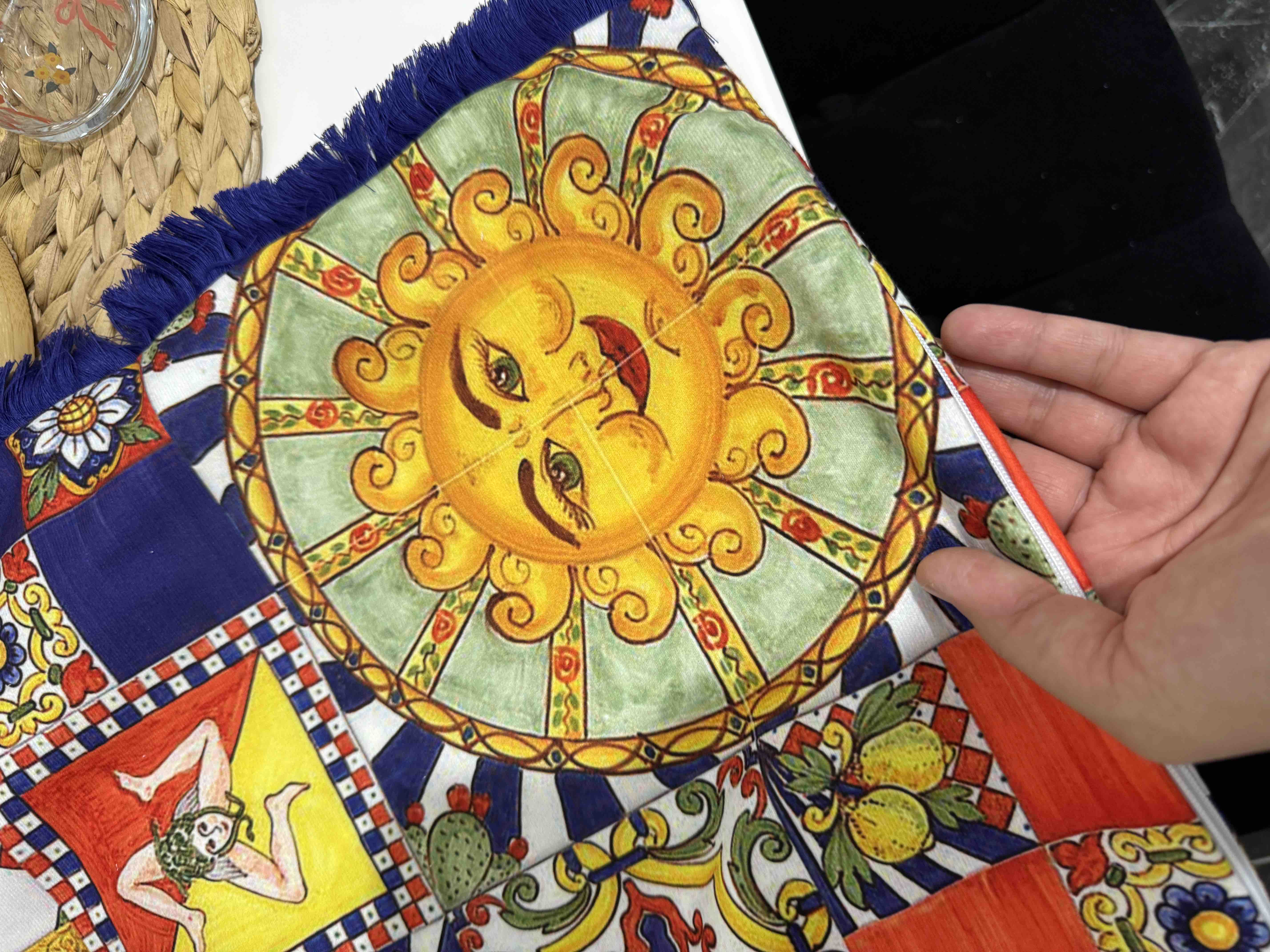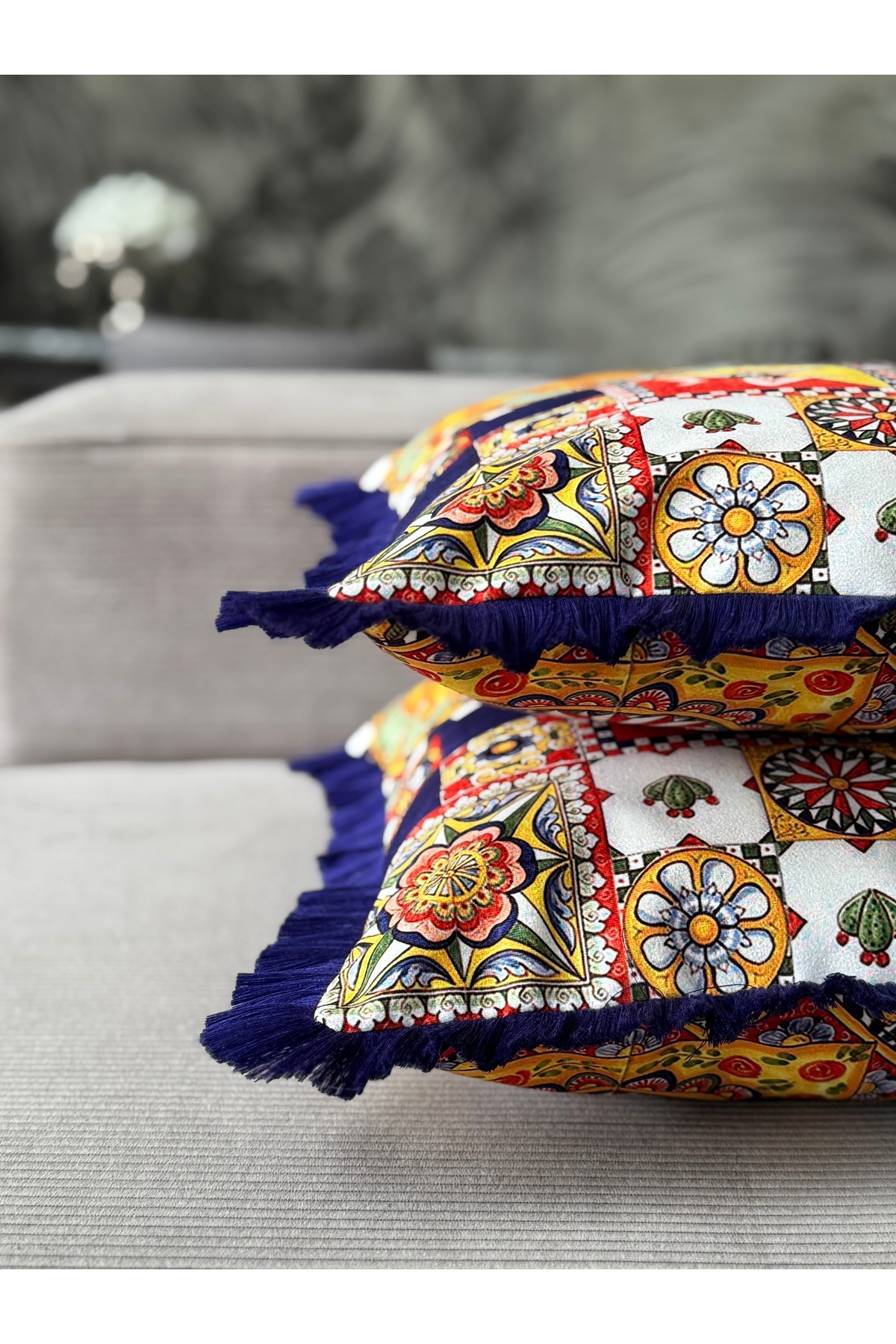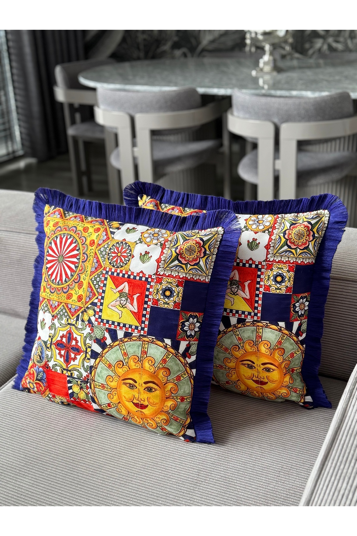 Çift TaraflıGüneş Dekoratif Saçaklı Kırlent Kılıfı 1Adet 43x43(SK-K02) Çift TaraflıGüneş Dekoratif Saçaklı Kırlent Kılıfı 1Adet 43x43(SK-K02) 43 x 43