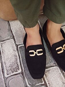 Marlin Siyah Süet Saraçlı Gold Aksesuarlı Loafer Ayakkabı Babet Marlin Siyah Süet Saraçlı Gold Aksesuarlı Loafer Ayakkabı Babet 4022ALY 40