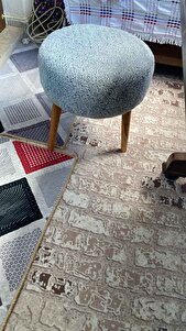 Yuvarlak Puf Bench Ahşap Ayaklı Dekoratif Peluş Yuvarlak Puf Bench Ahşap Ayaklı Dekoratif Peluş ortapuf1 تک سایز