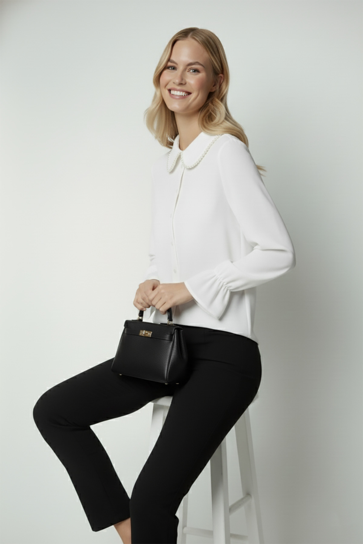 Kadın Ekru Büzgülü Kol Dantenli Yaka Detaylı Dokuma Gömlek Kadın Ekru Büzgülü Kol Dantenli Yaka Detaylı Dokuma Gömlek FUMEL-0303 XL