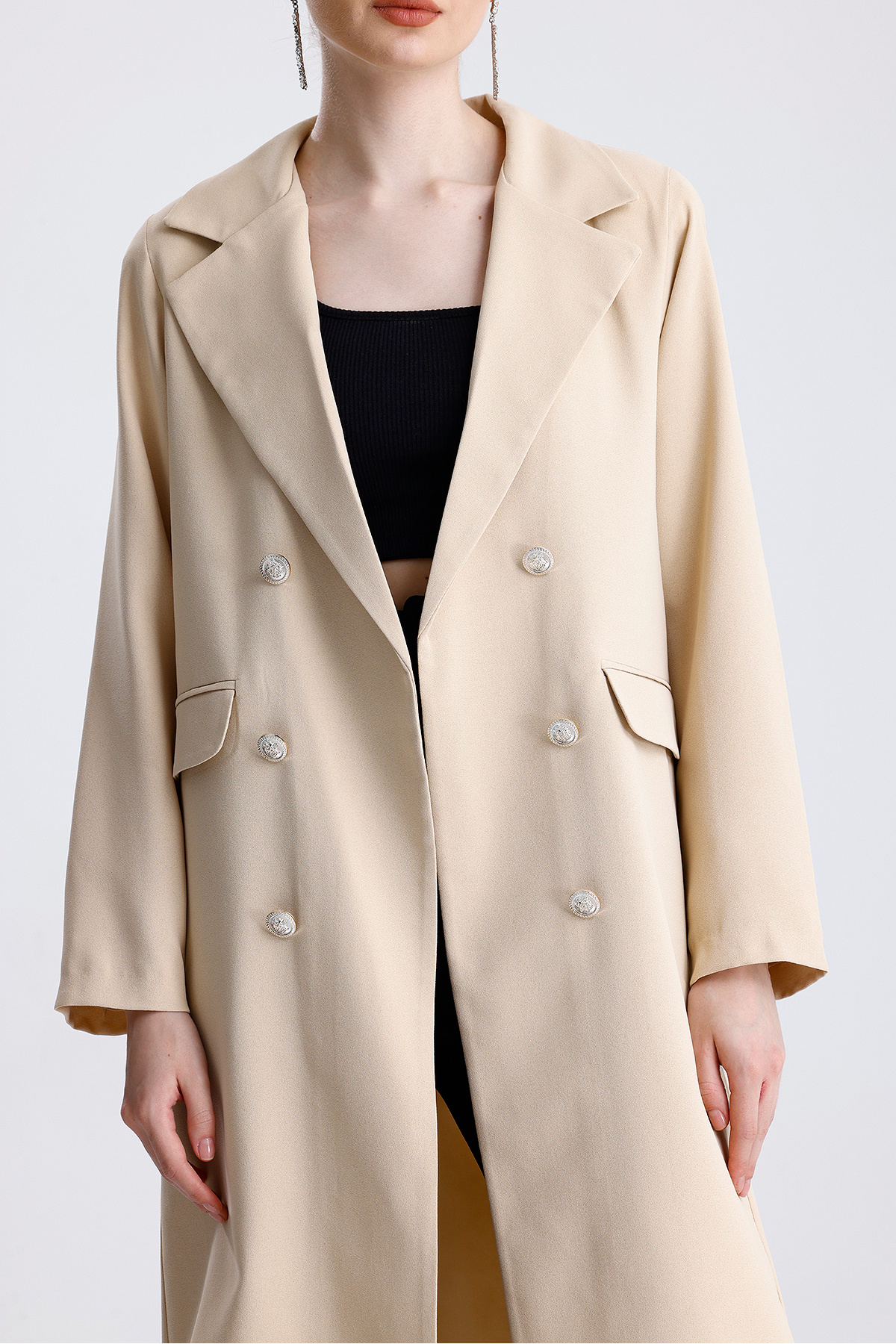 Kadın Düğme Detaylı Astarlı Uzun Oversize Blazer Ceket Kadın Düğme Detaylı Astarlı Uzun Oversize Blazer Ceket MDTRN32346 2XL