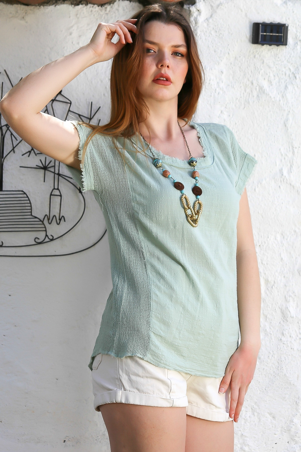 Mint Havuz Yaka Düşük Kol File Detaylı Yıkamalı Ve Pis Dikişli Casual Dokuma Bluz 68 52 Mint Havuz Yaka Düşük Kol File Detaylı Yıkamalı Ve Pis Dikişli Casual Dokuma Bluz 68 52 M10010200BL91419 XL