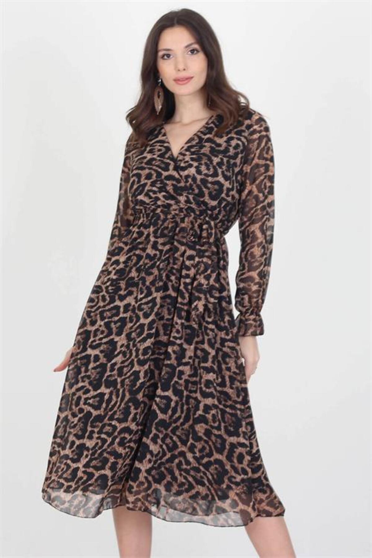 kadın yakası bağlama dertaylı leopar şifon elbise RSSN07 kadın yakası bağlama dertaylı leopar şifon elbise RSSN07 2XL