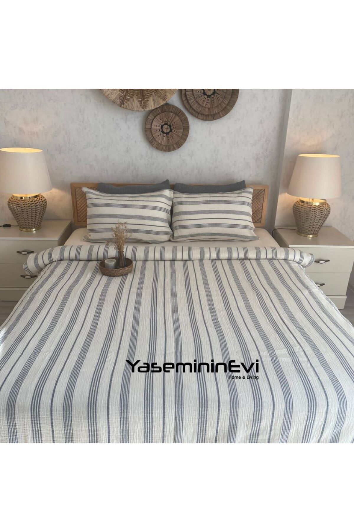 Gri Çizgili Battal Boy Müslin Nevresim Takımı Gri Çizgili Battal Boy Müslin Nevresim Takımı eh123 تک سایز