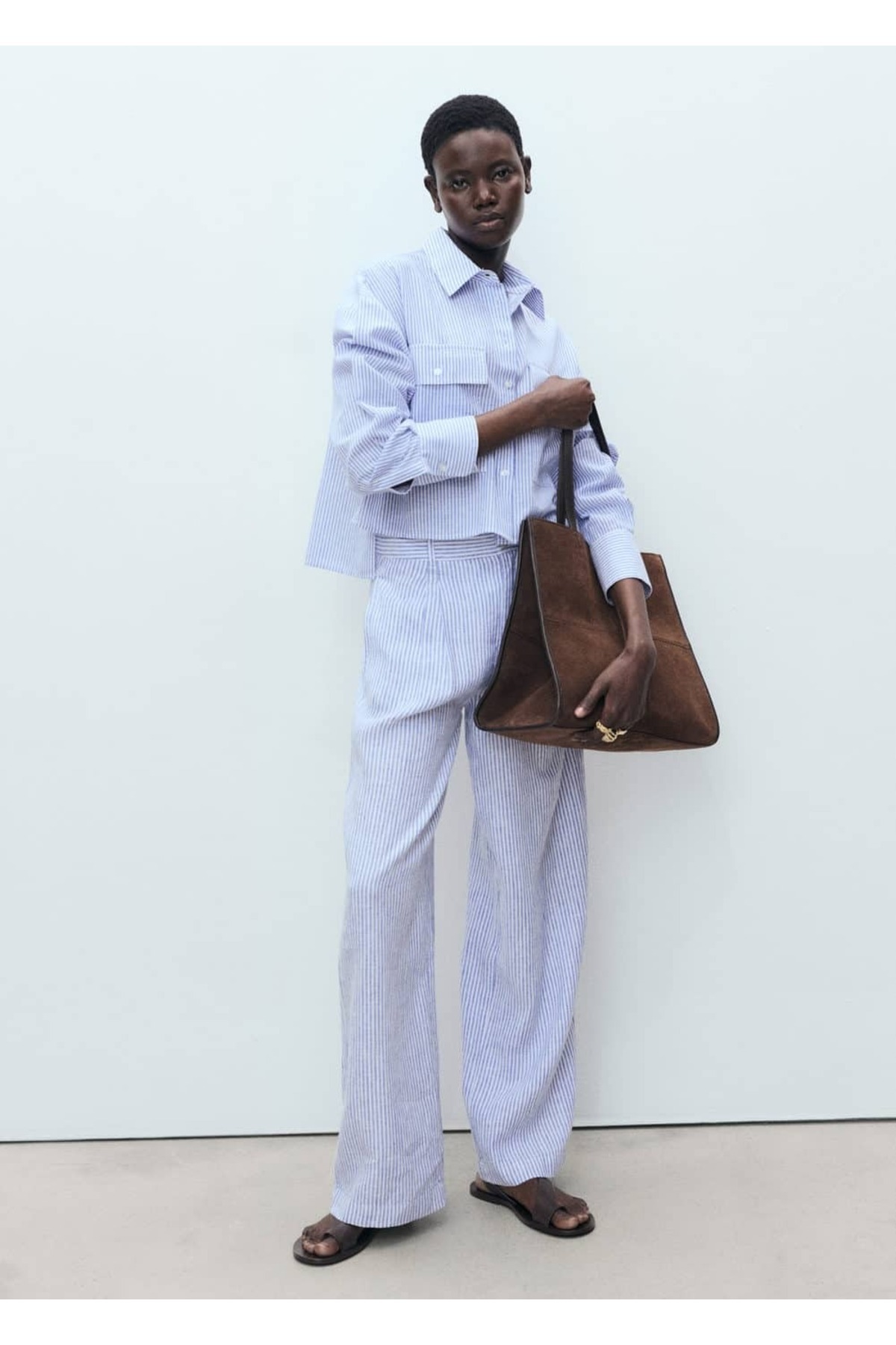 Keten karışımlı çizgili pantolon Keten karışımlı çizgili pantolon 87058259 44