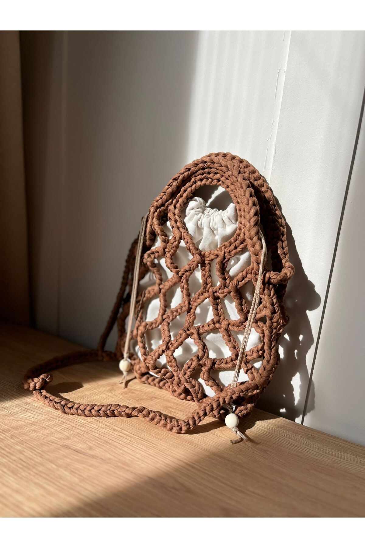 El Örgüsü Torbalı File Penye İp Omuz Çantası El Örgüsü Torbalı File Penye İp Omuz Çantası NB0100-100 Standart