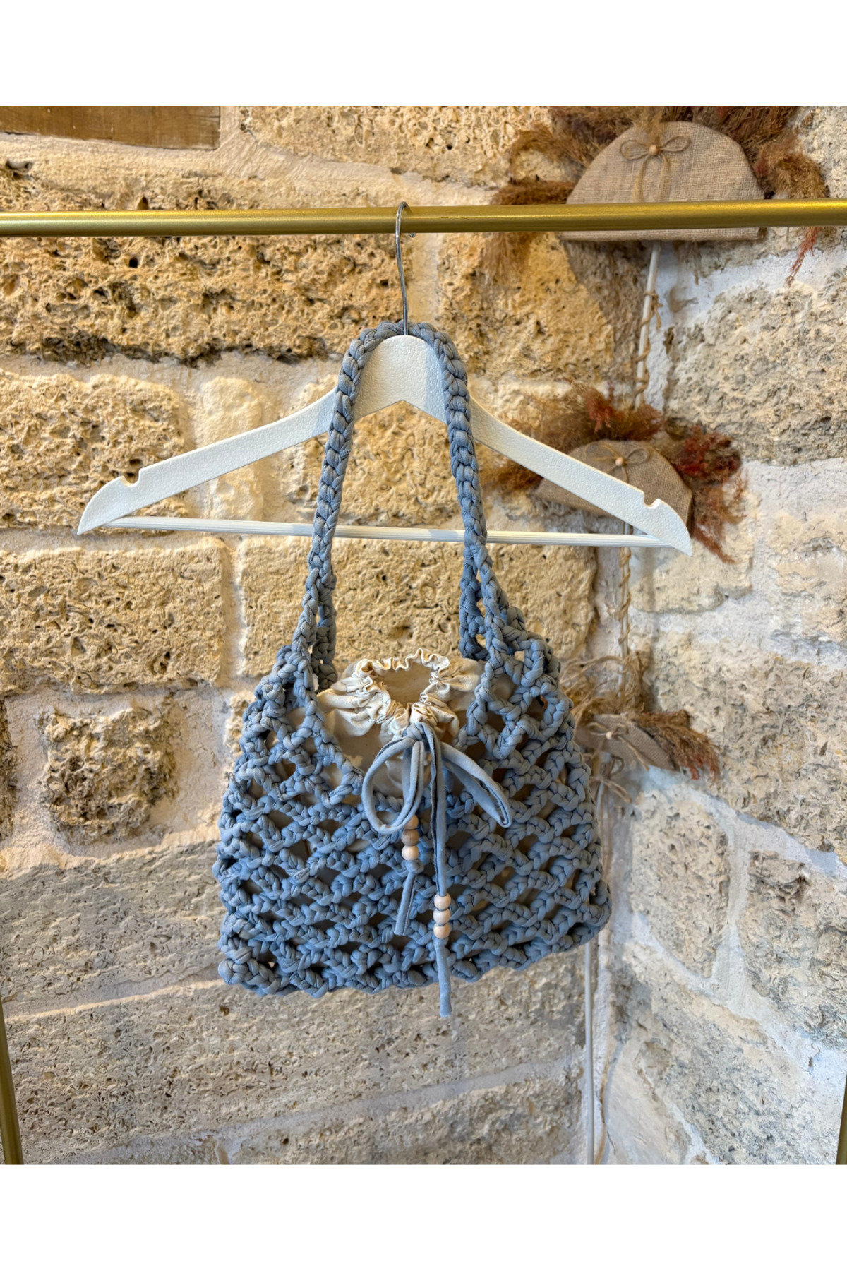 El Örgüsü Torbalı File Penye İp Omuz Çantası El Örgüsü Torbalı File Penye İp Omuz Çantası NB0100-100 Standart