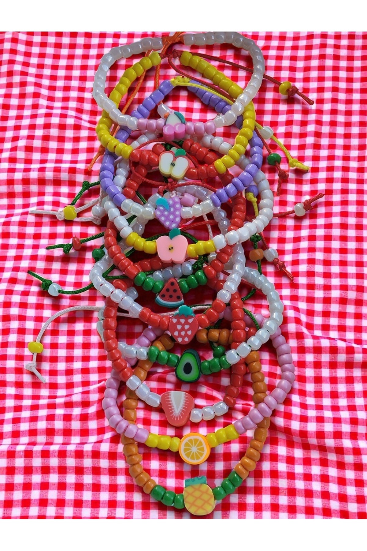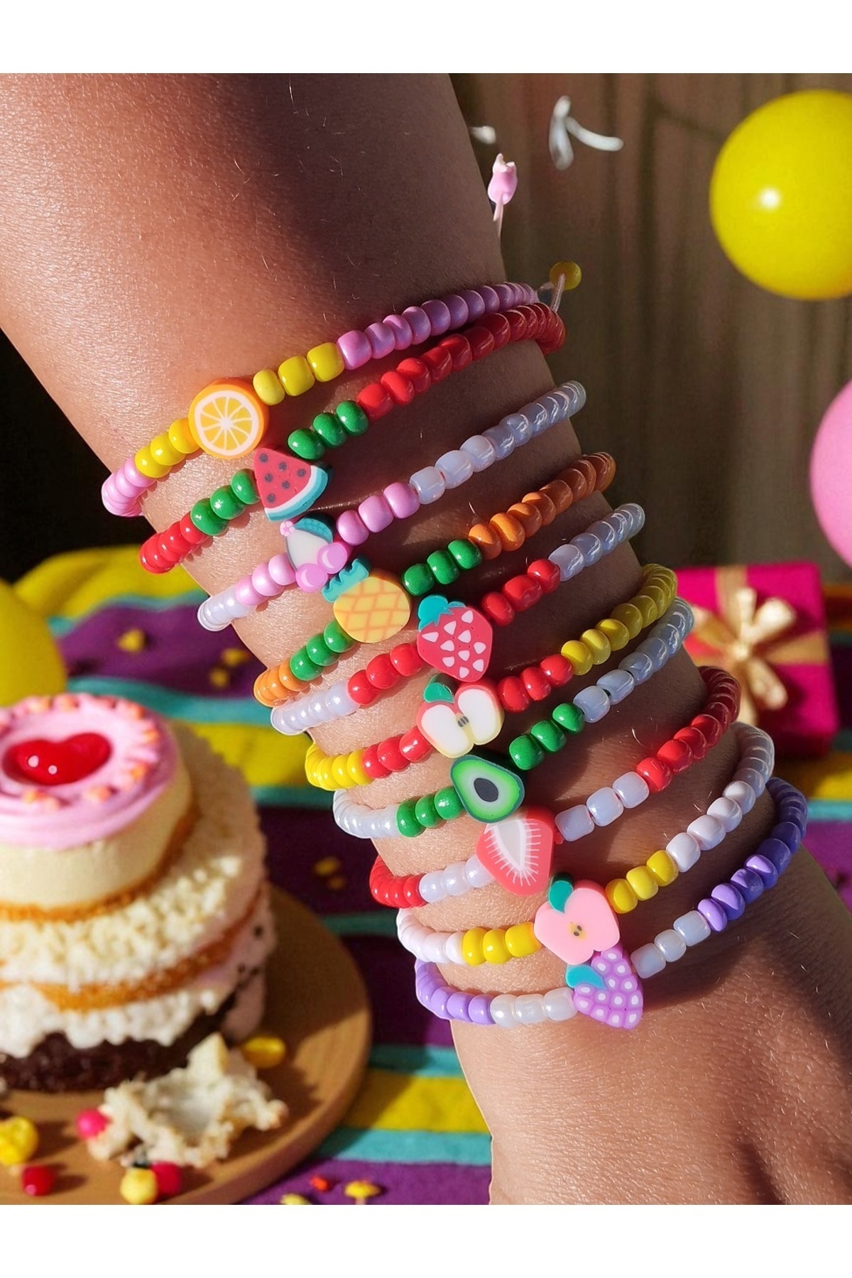 Çocuklara Özel Bayram ve Karne Hediyesi Meyveli Fimo ve Kumboncuk10'lu Bileklik Çocuklara Özel Bayram ve Karne Hediyesi Meyveli Fimo ve Kumboncuk10'lu Bileklik AMB-1478 تک سایز