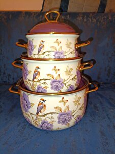 Fiorella Derin Bombeli Emaye Tencere Seti 16-20-24 cm Fiorella Derin Bombeli Emaye Tencere Seti 16-20-24 cm P134S1455 تک سایز