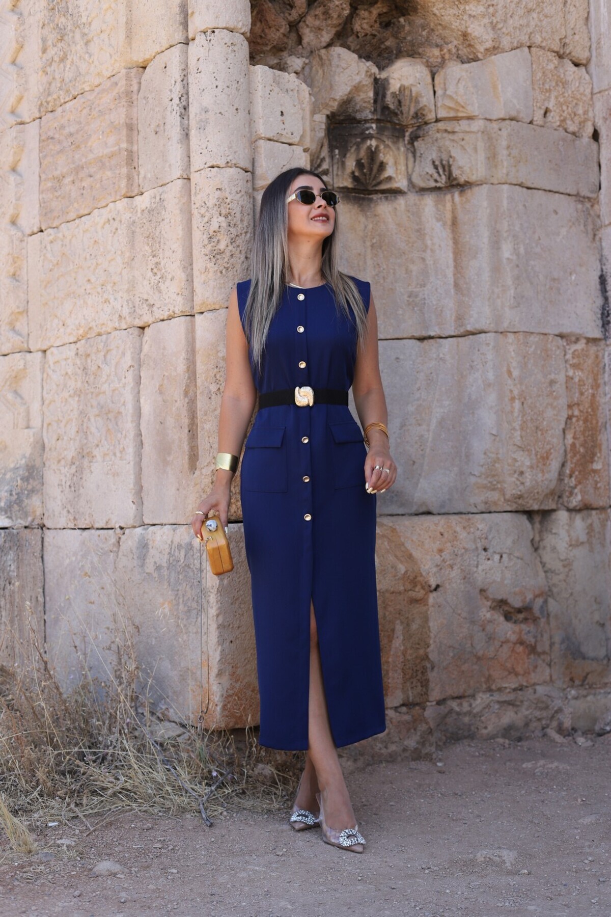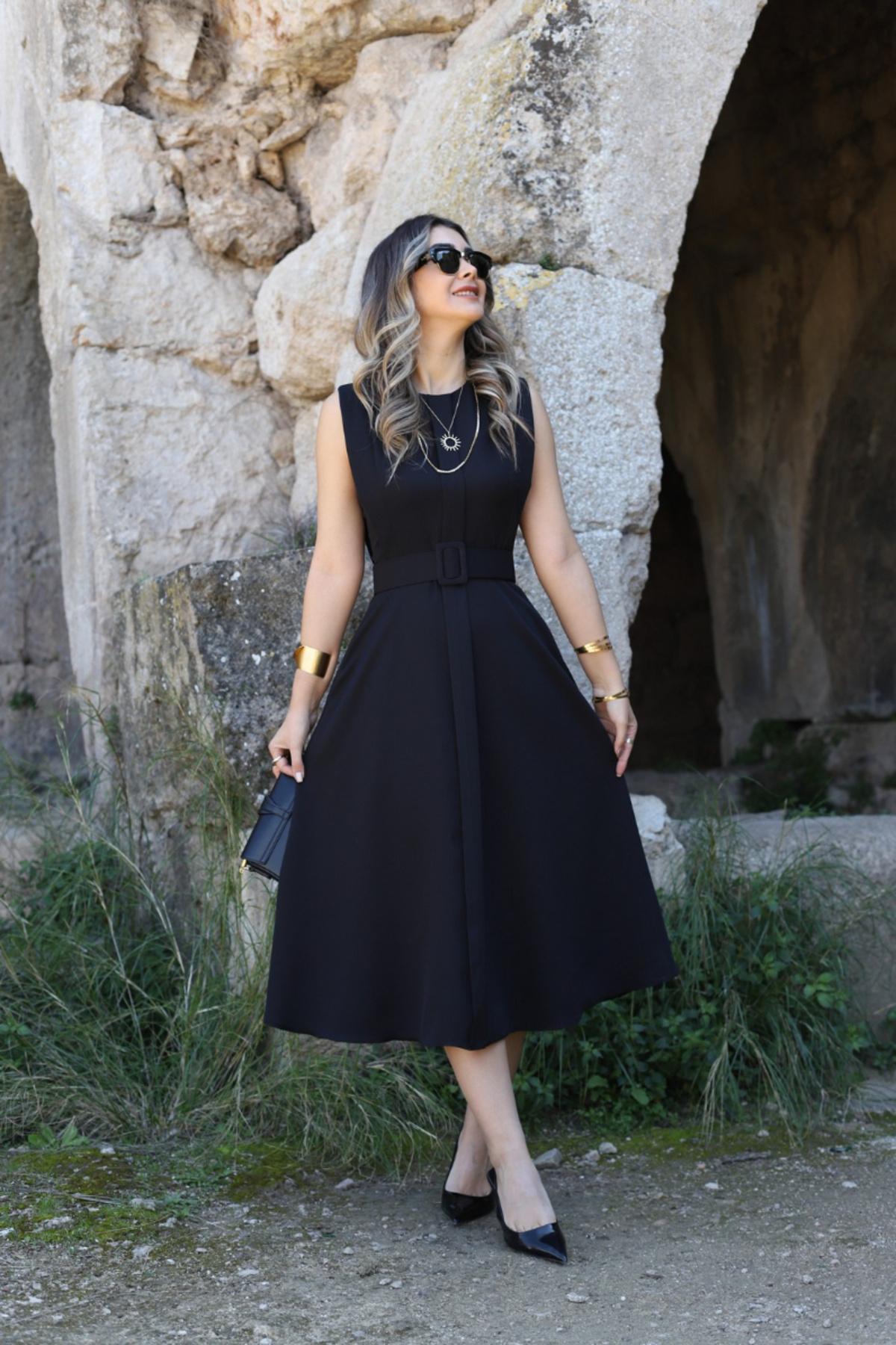 Siyah Aller Detay Kemerli Elbise Siyah Aller Detay Kemerli Elbise P3202S6477 XL