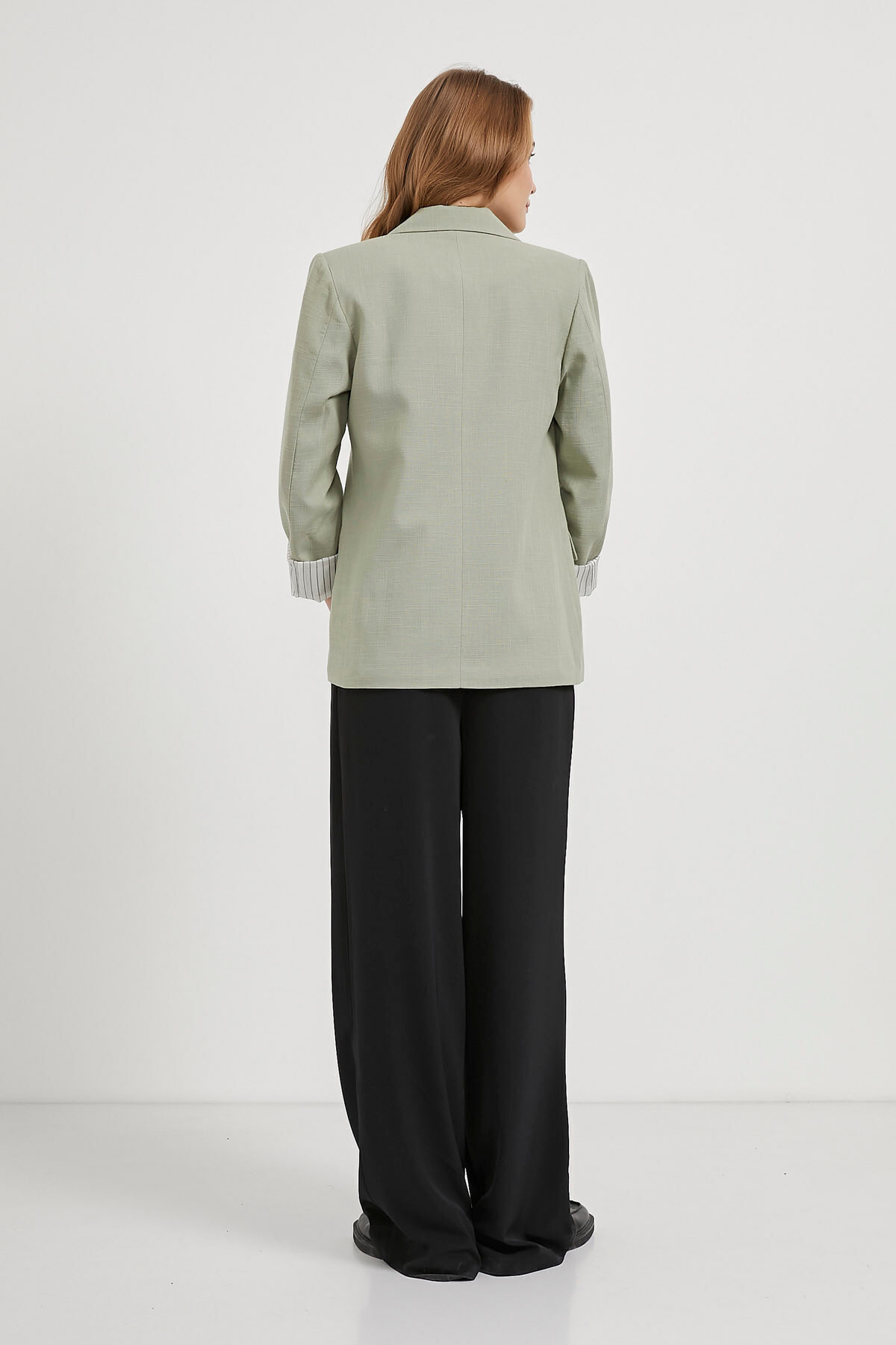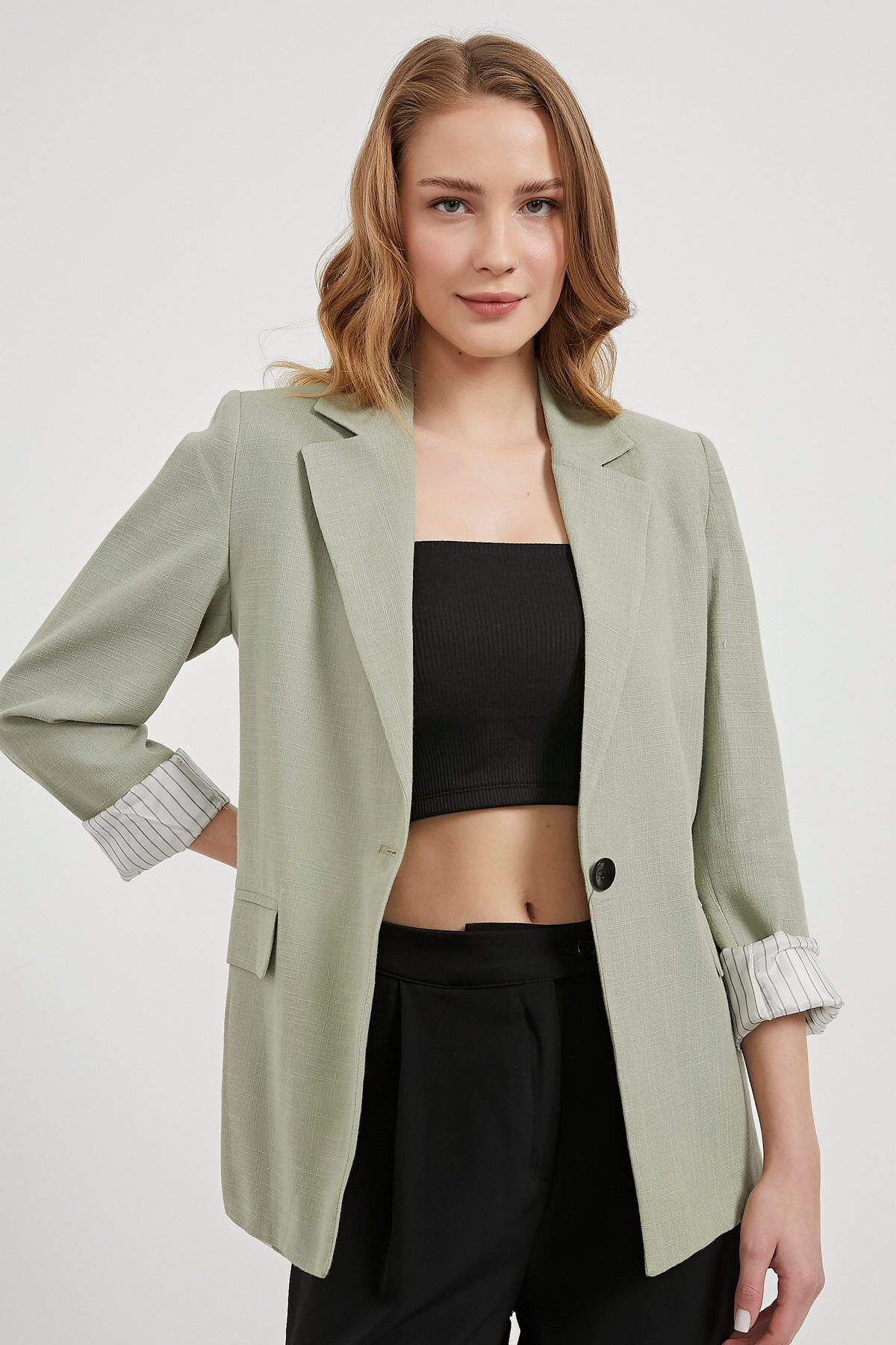Kadın Ofis Stili Kruvaze Yaka Blazer Yeşil Ceket Kadın Ofis Stili Kruvaze Yaka Blazer Yeşil Ceket 463-5YB6023-3CKT XL