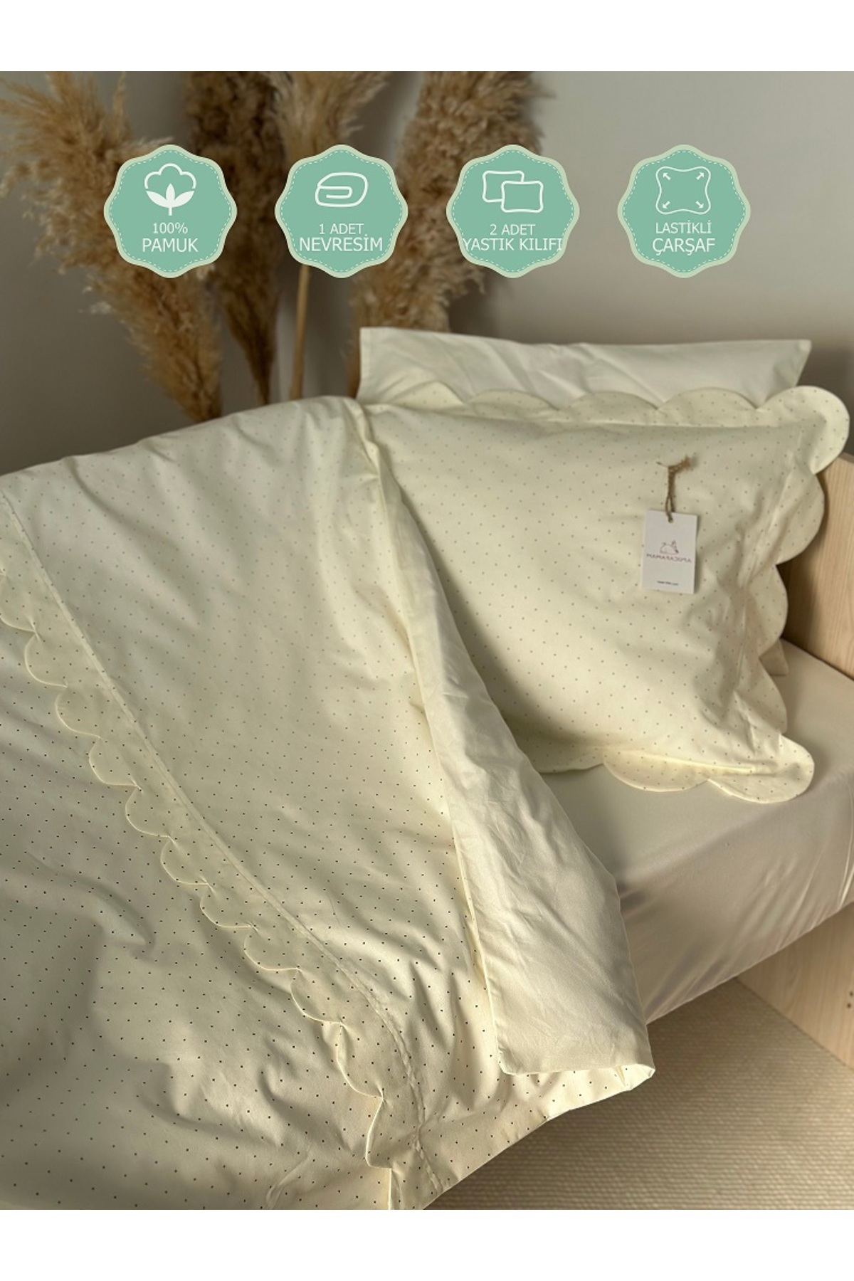 - Yıkama Talimatı : Maksimum 30°C’de yıkayınız. • Ağartıcı kullanmayınız. • Tersten ütüleyiniz. • Düşük ısıda kurutma makinesinde kurutabilirsiniz. • Uzun ömürlü kullanım için kuru temizleme önerilir. Bu şık ve konforlu bebek nevresim takımıyla bebeğinizin odasına zarafet ve kişiselleştirilmiş bir dokunuş katın!