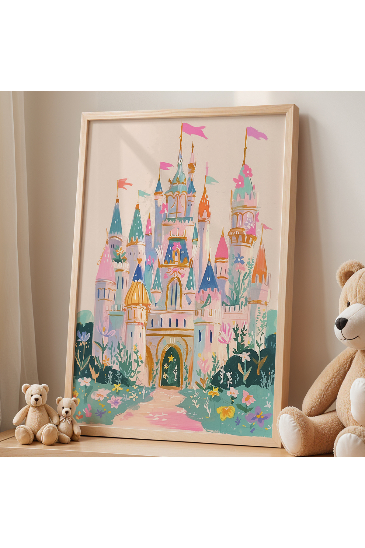 Masal Şatosu Temalı Çocuk Odası Ahşap Çerçeveli Duvar Tablosu Masal Şatosu Temalı Çocuk Odası Ahşap Çerçeveli Duvar Tablosu PRN-150 50 x 70
