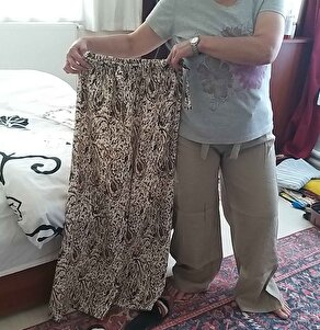 Pamuk-Keten Dökümlü Bej Desenli Palazzo Pantolon Pamuk-Keten Dökümlü Bej Desenli Palazzo Pantolon 003-Rain XL
