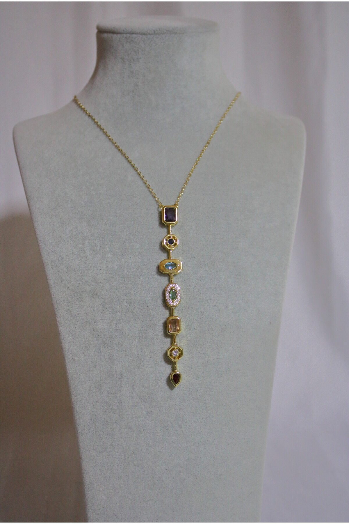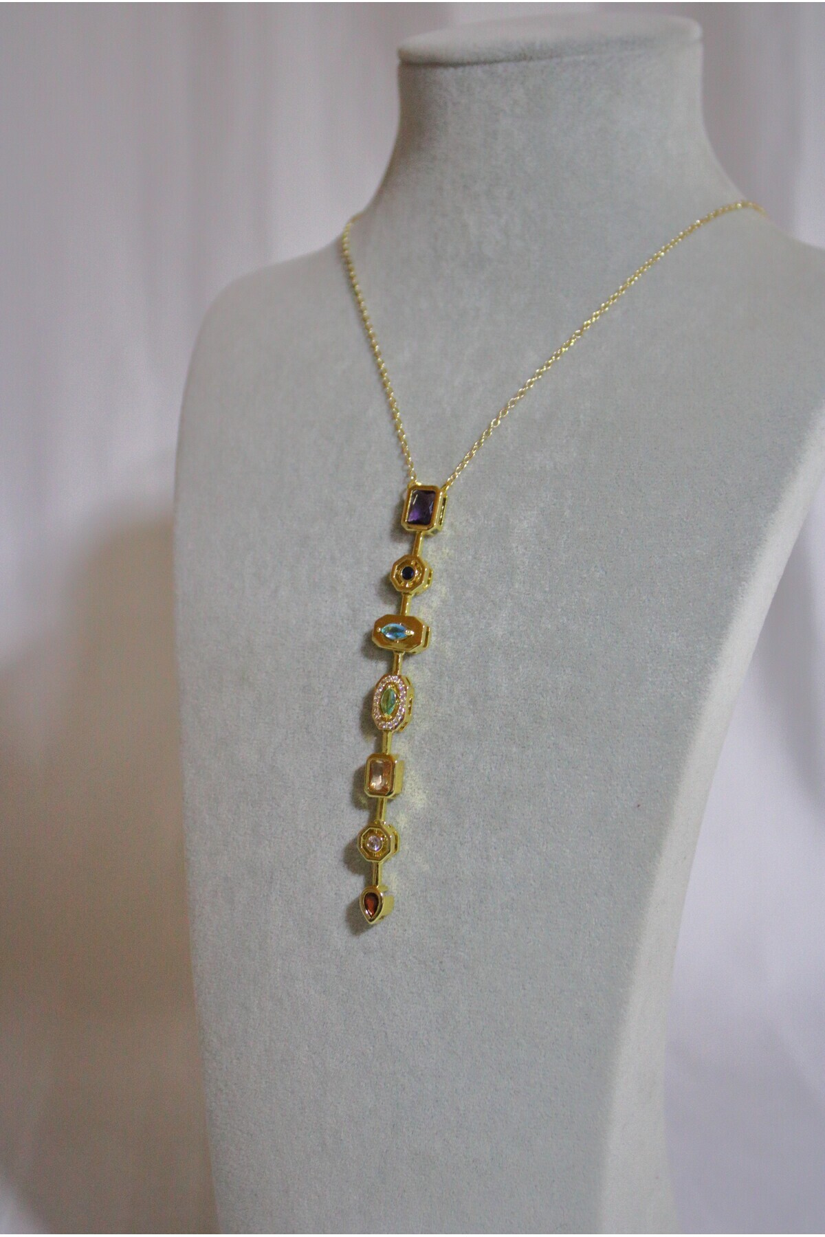 Steel Çok 7 Element Renkli Taşlı Y Kolye Modeli Gold Steel Çok 7 Element Renkli Taşlı Y Kolye Modeli Gold KOMB-010 0