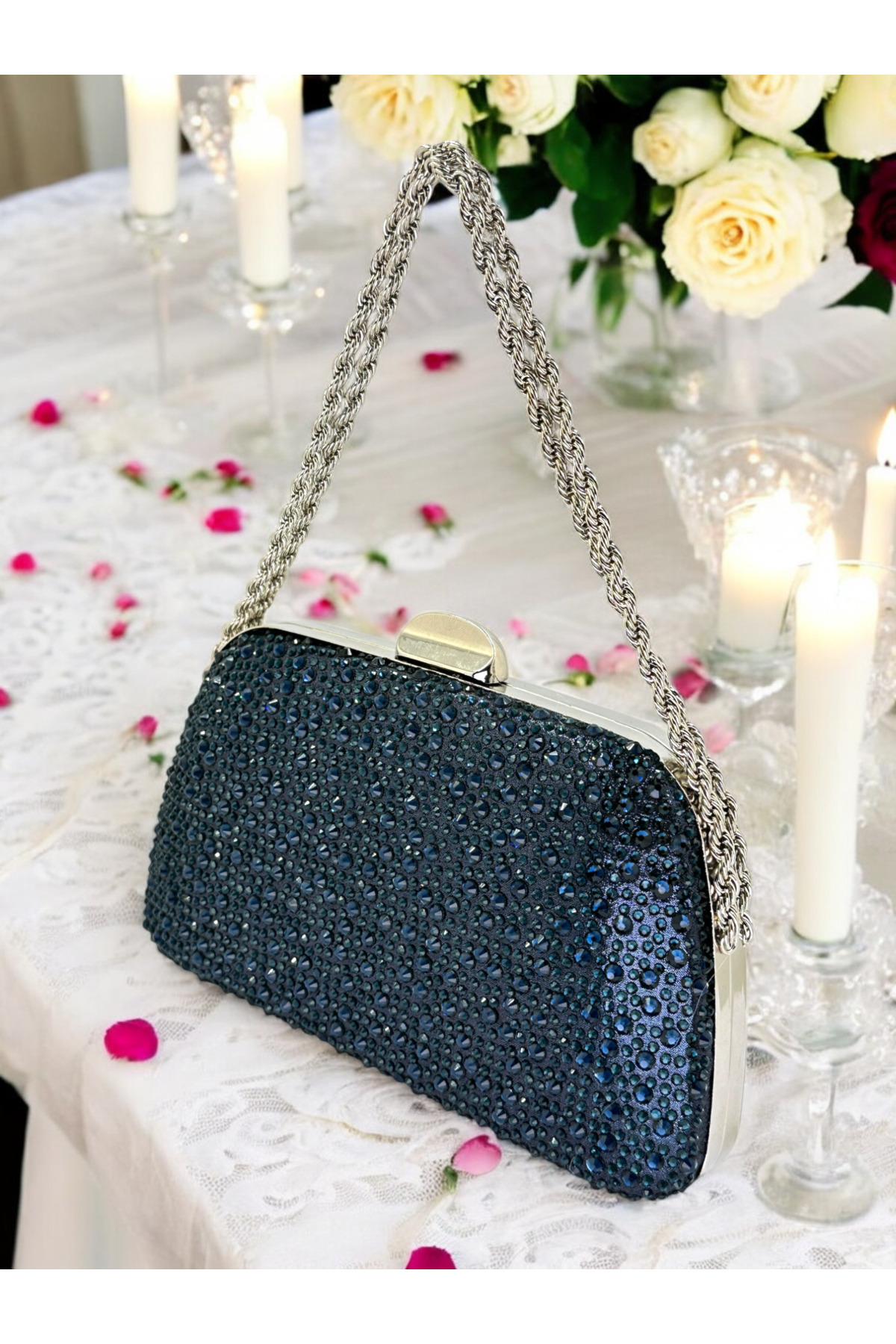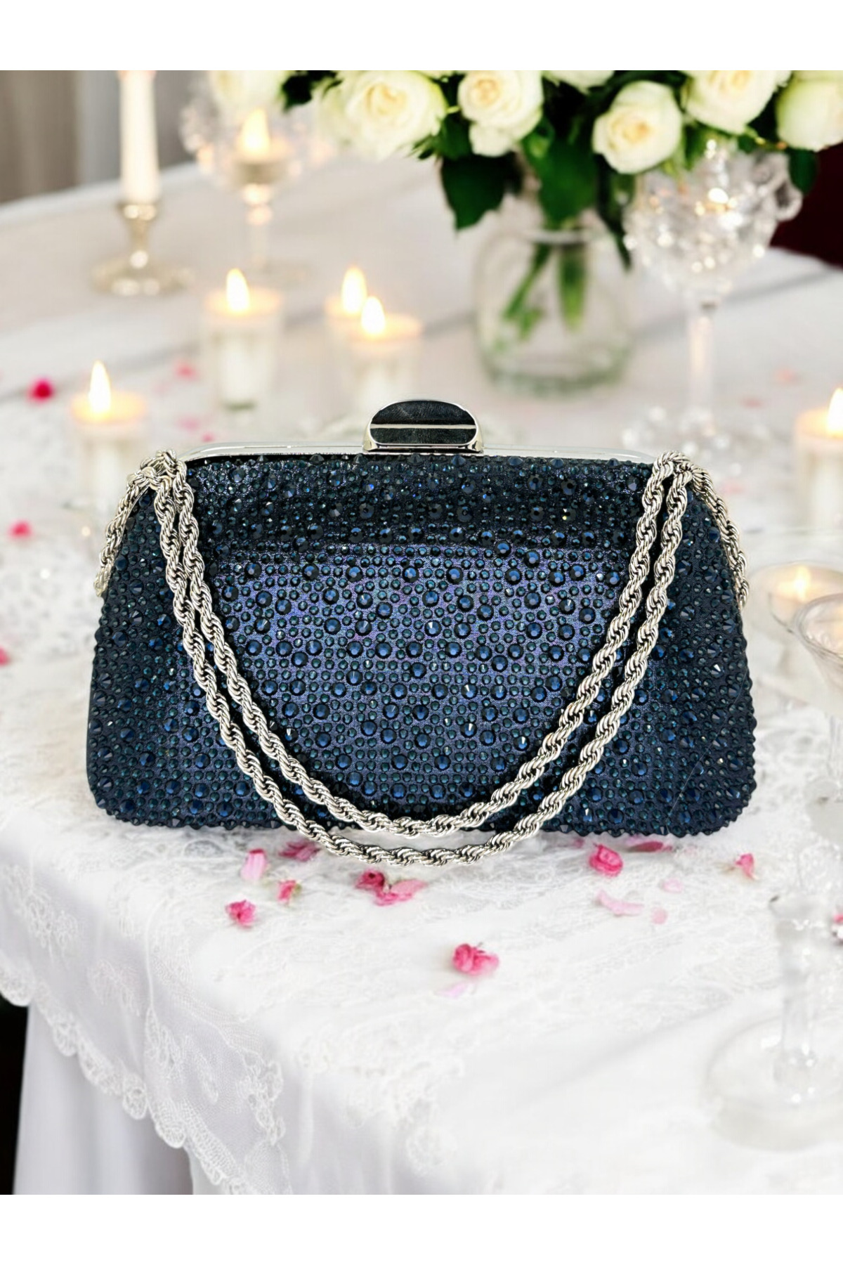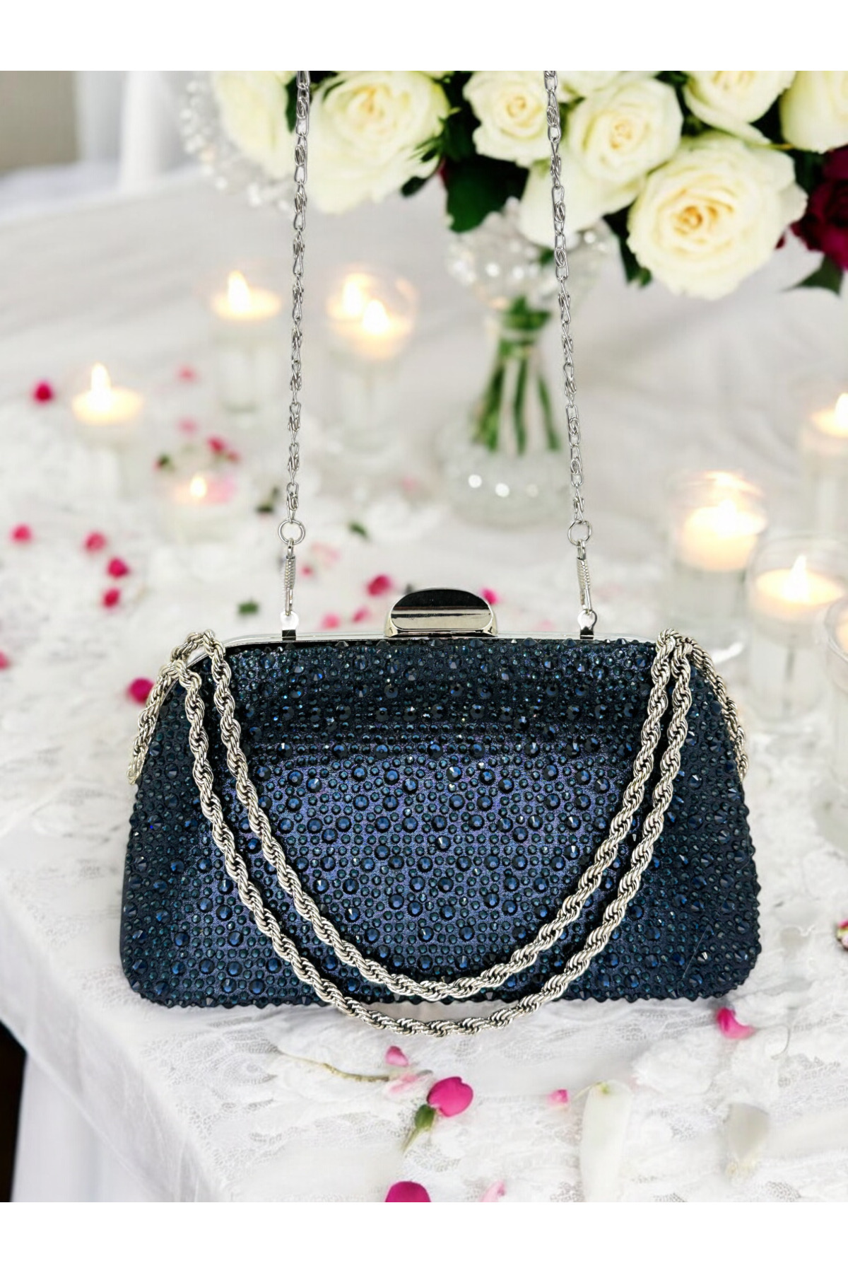 Lacivert Renk Taşlı Zincir Kulplu Kadın Abiye Çanta Mezuniyet Düğün Nişan Lacivert Renk Taşlı Zincir Kulplu Kadın Abiye Çanta Mezuniyet Düğün Nişan 134-8 X تک سایز