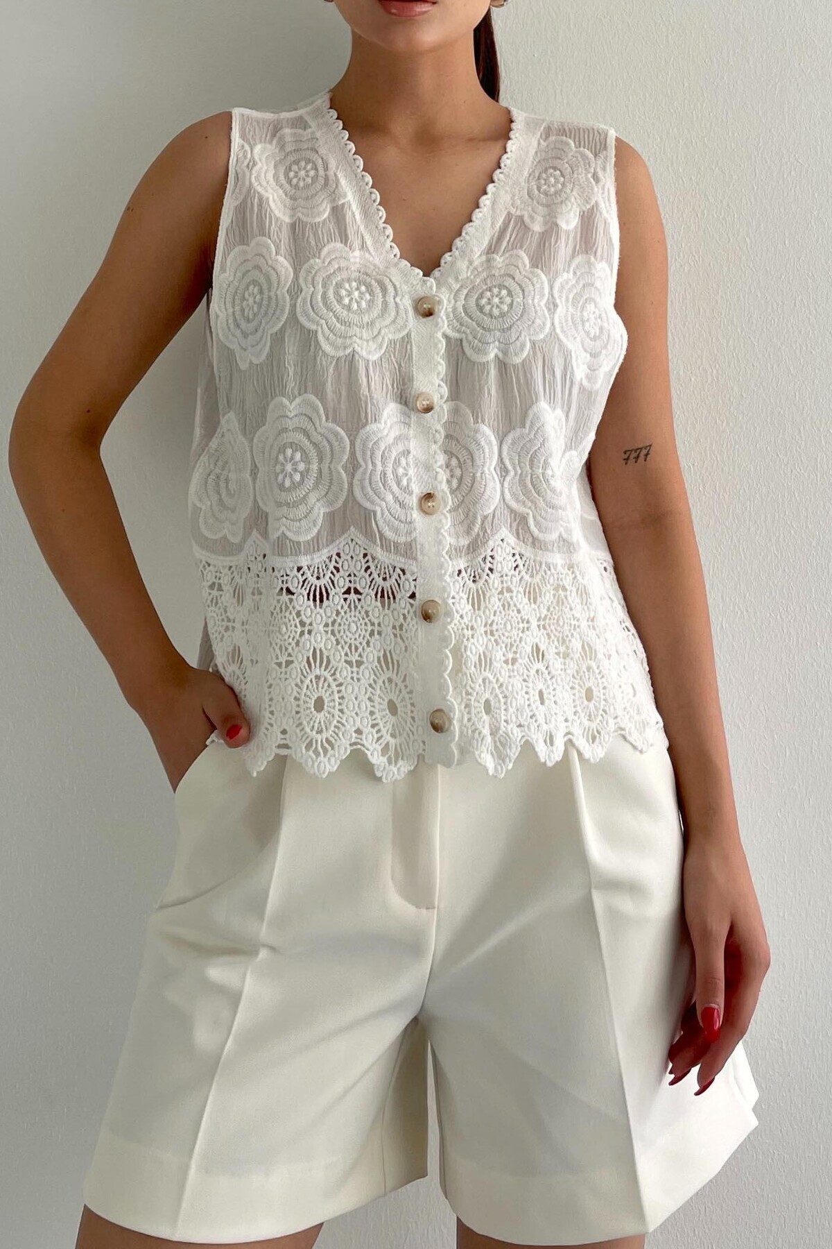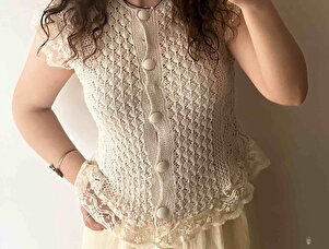Krem Dantelli Yelek Krem Dantelli Yelek 4184 Standart