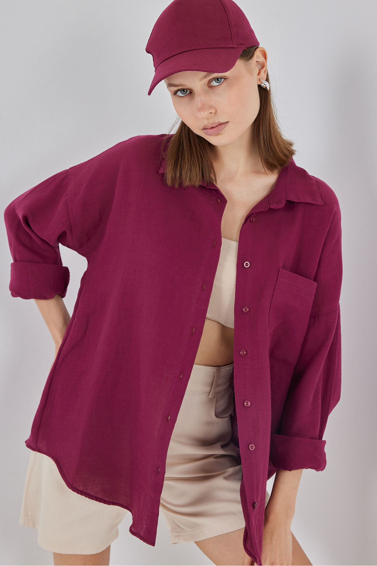 Kadın Beyaz - Yeşil Oversize Uzun Basic Gömlek Kadın Beyaz - Yeşil Oversize Uzun Basic Gömlek bra30 2XL