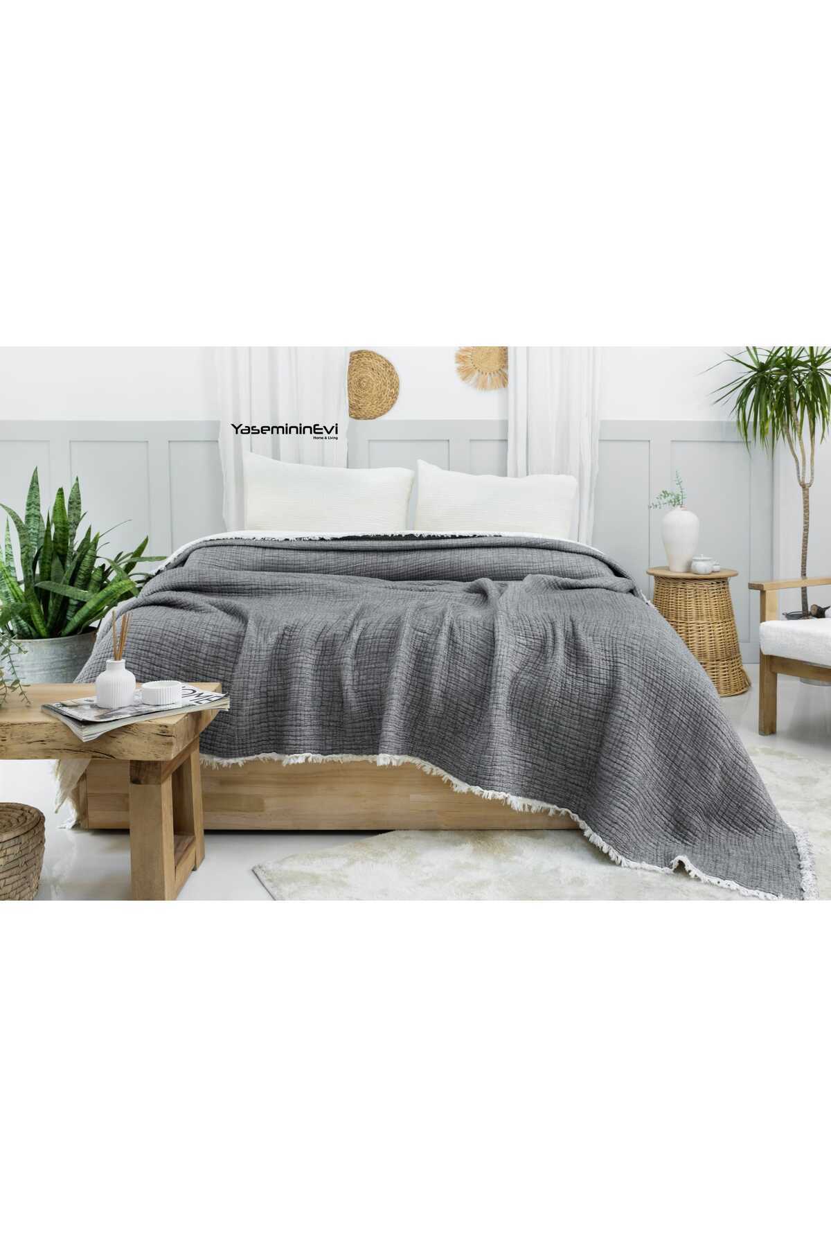 Tek Kişilik Koyu Gri 6 Katlı Müslin Yorgan , Yatak Örtüsü (170X230CM) Tek Kişilik Koyu Gri 6 Katlı Müslin Yorgan , Yatak Örtüsü (170X230CM) ysmnyrgn تک سایز