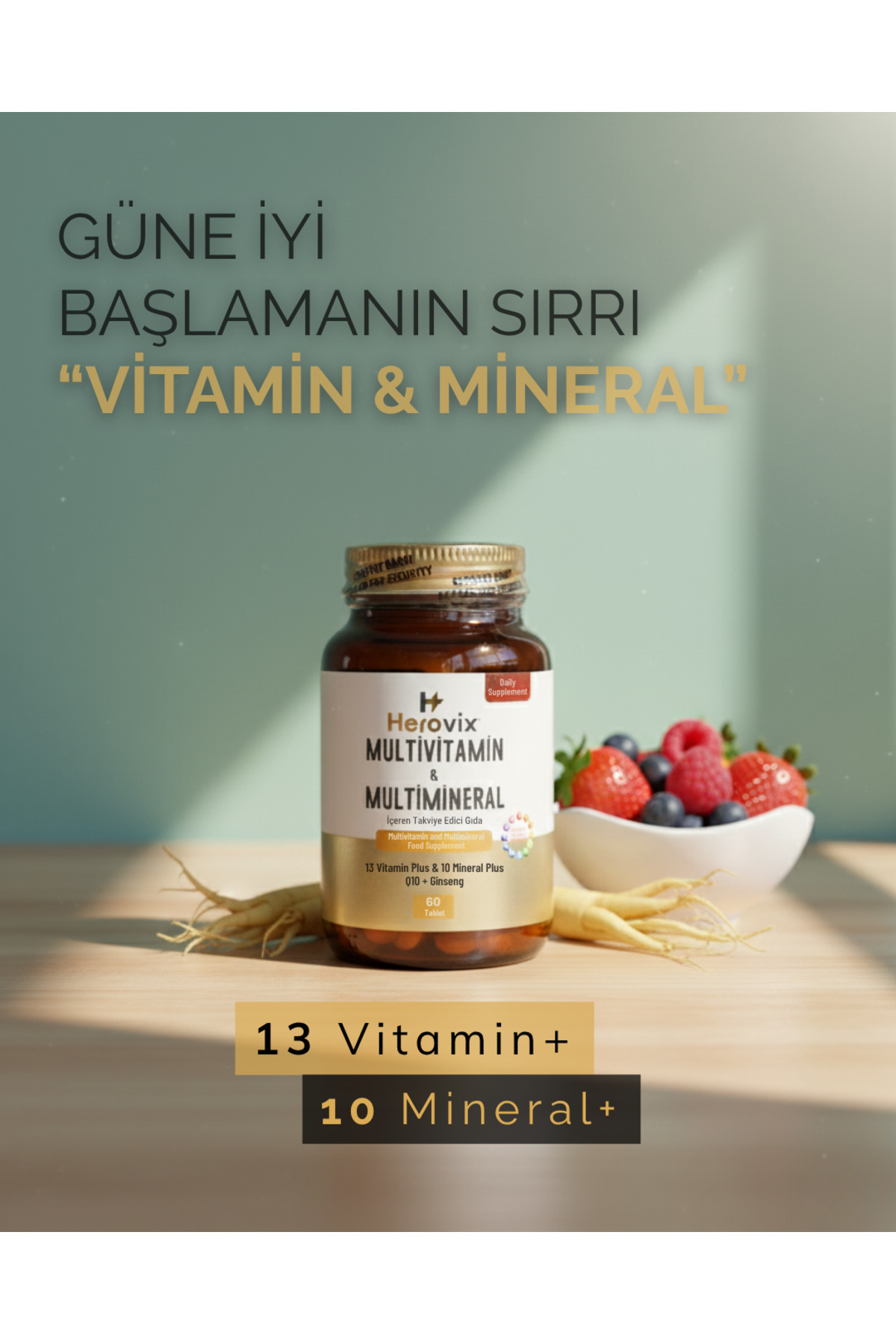 Multivitamin & Multimineral 60 Tablet (13 Vitamin | 10 Mineral | Q10 + Ginseng) Multivitamin & Multimineral 60 Tablet (13 Vitamin | 10 Mineral | Q10 + Ginseng) M0020 تک سایز