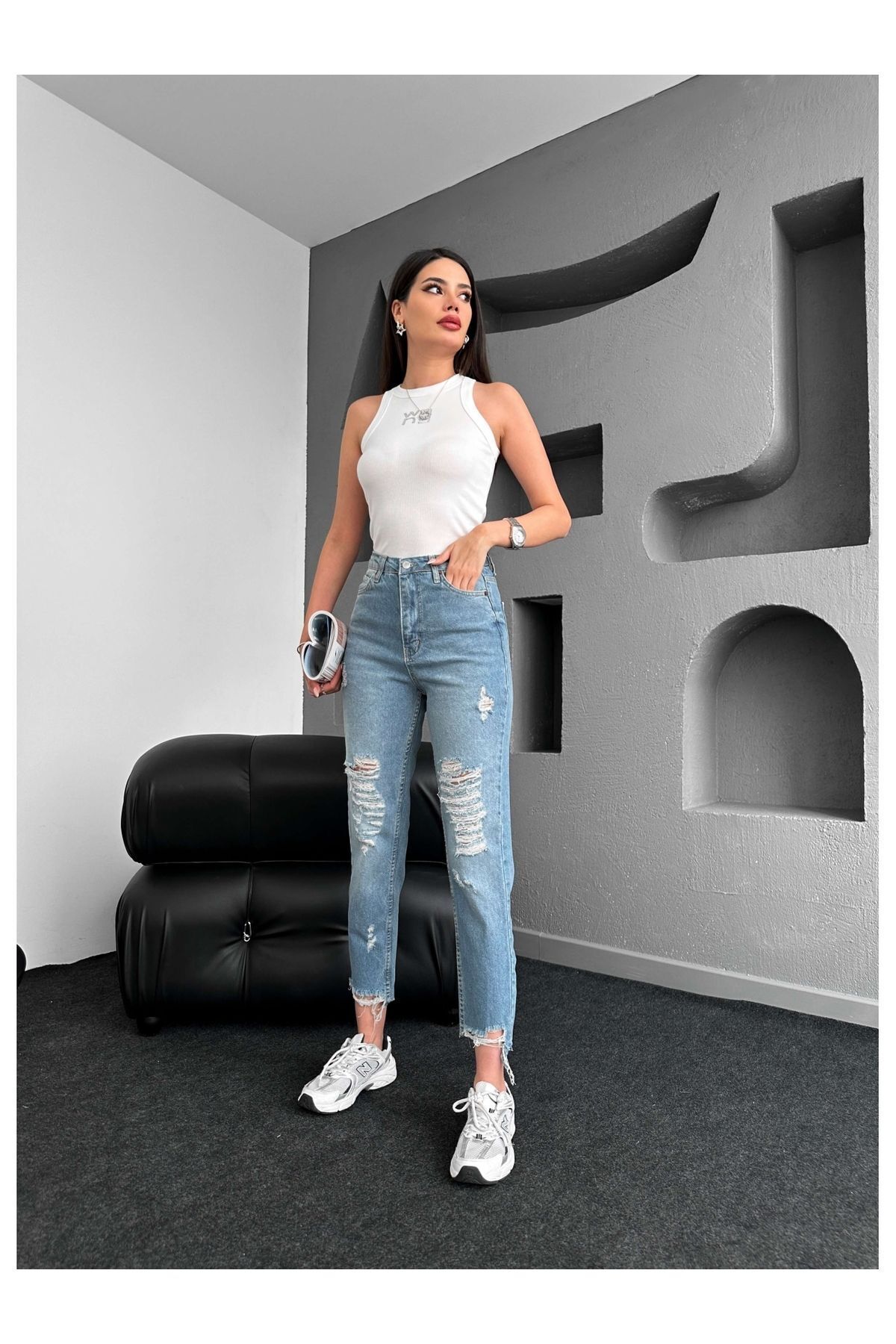 Kadın Bol Paça Mom Jeans Buz Mavi Kot Pantolon Kadın Bol Paça Mom Jeans Buz Mavi Kot Pantolon 72738 42