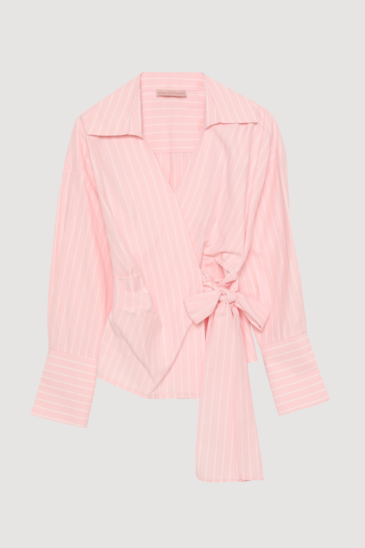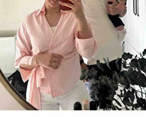 Kruvaze Bağlamalı Çizgili Bluz Pembe Kruvaze Bağlamalı Çizgili Bluz Pembe 25YBLZ00390 L
