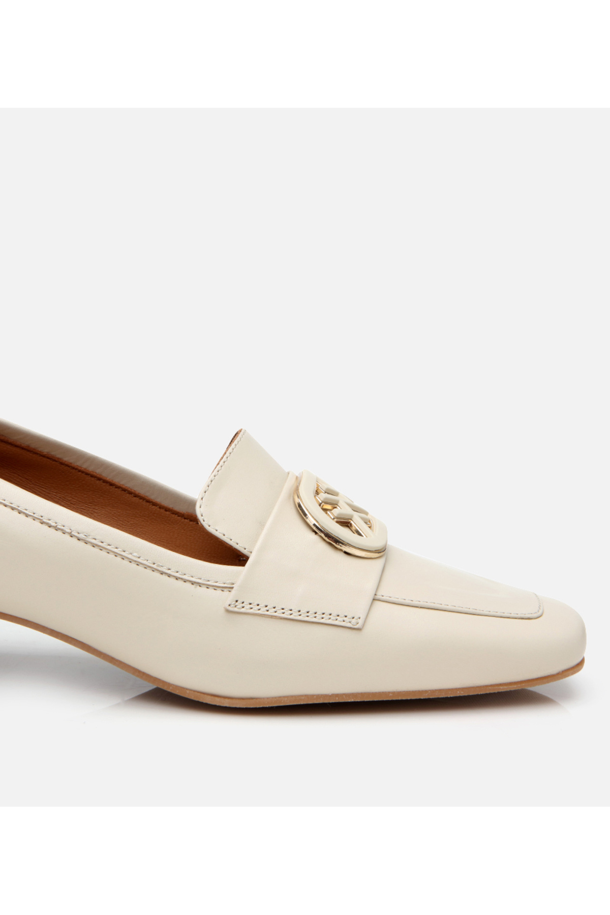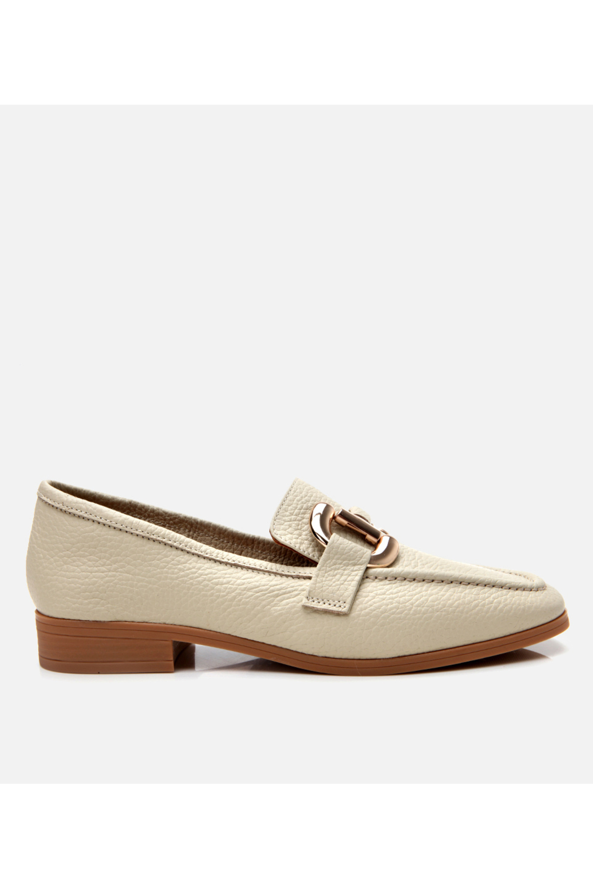 Kadın Deri Ekru Tokalı Kalın Topuklu Klasik Loafer Kadın Deri Ekru Tokalı Kalın Topuklu Klasik Loafer 01AYH304000A 41