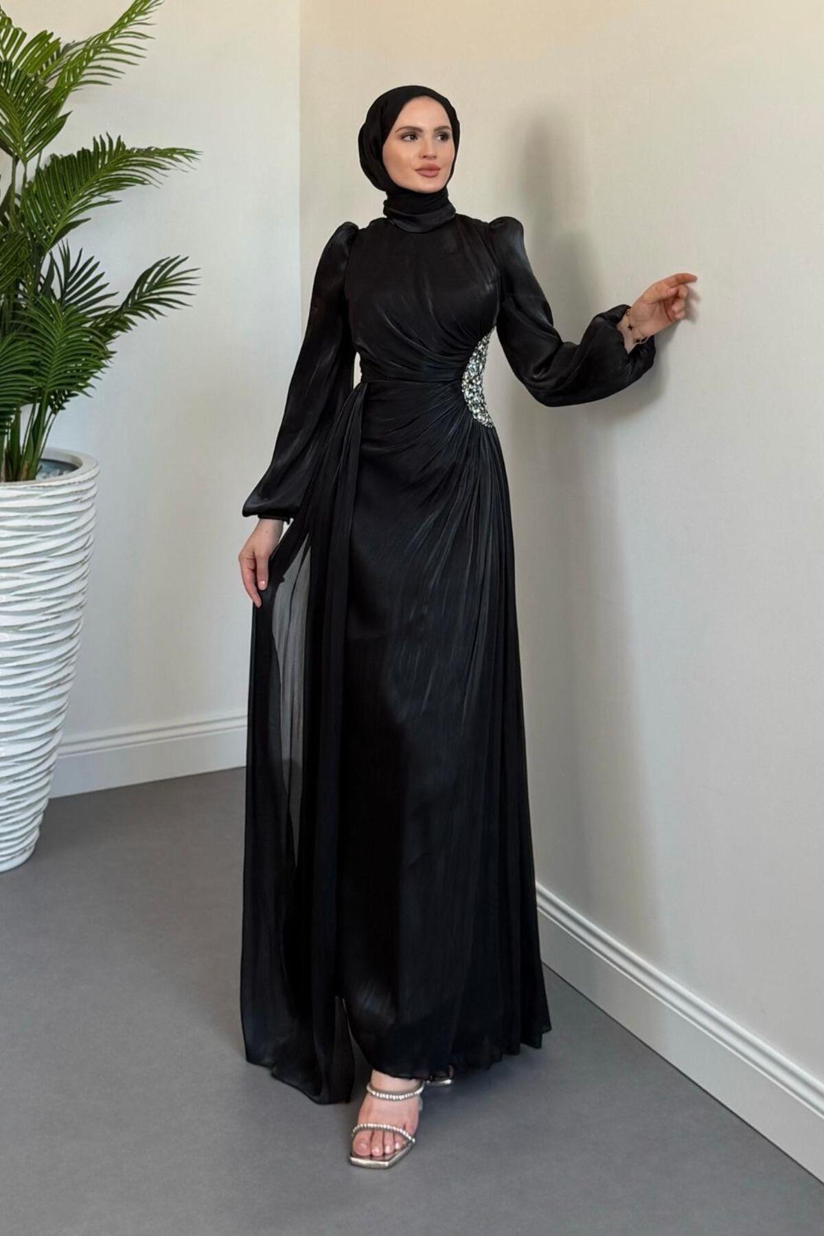 Rovena Yandan Bağlamalı Abiye Siyah Rovena Yandan Bağlamalı Abiye Siyah 4690 44