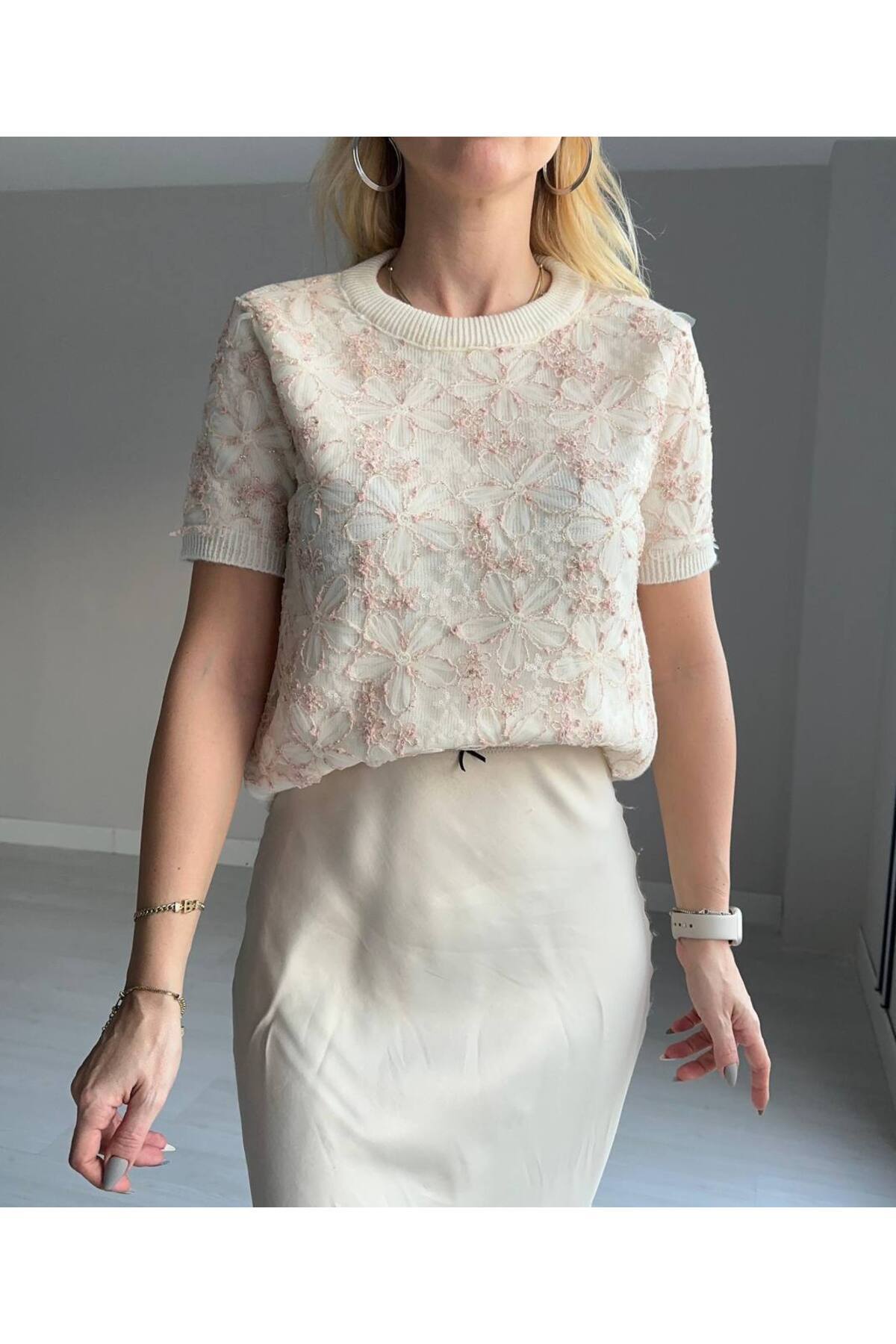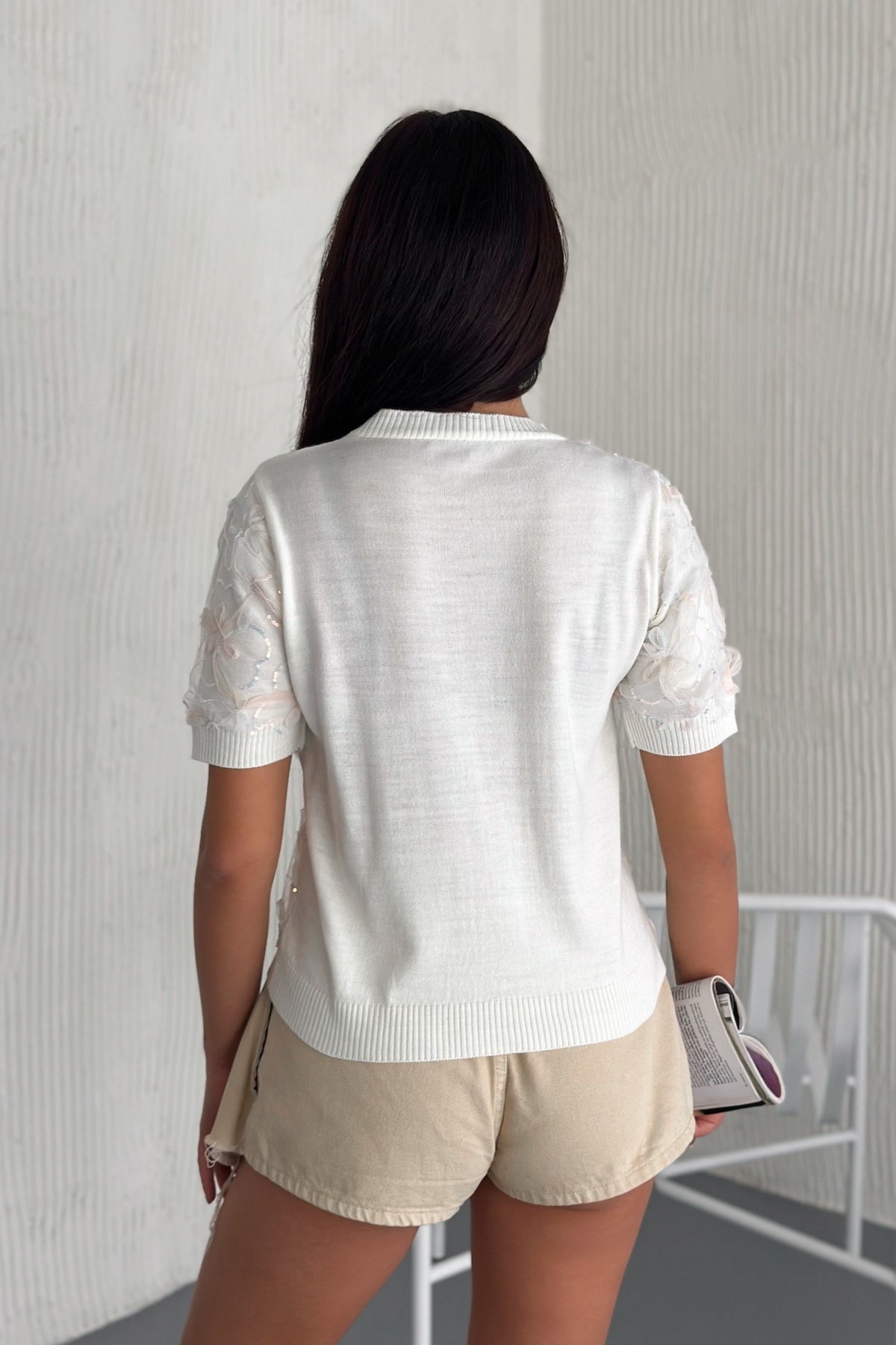 Kadın Beyaz Standart Beden Kısa Kollu Tül Çiçek Pul Payet İşlemeli Triko Bluz Kadın Beyaz Standart Beden Kısa Kollu Tül Çiçek Pul Payet İşlemeli Triko Bluz 12094 Standart