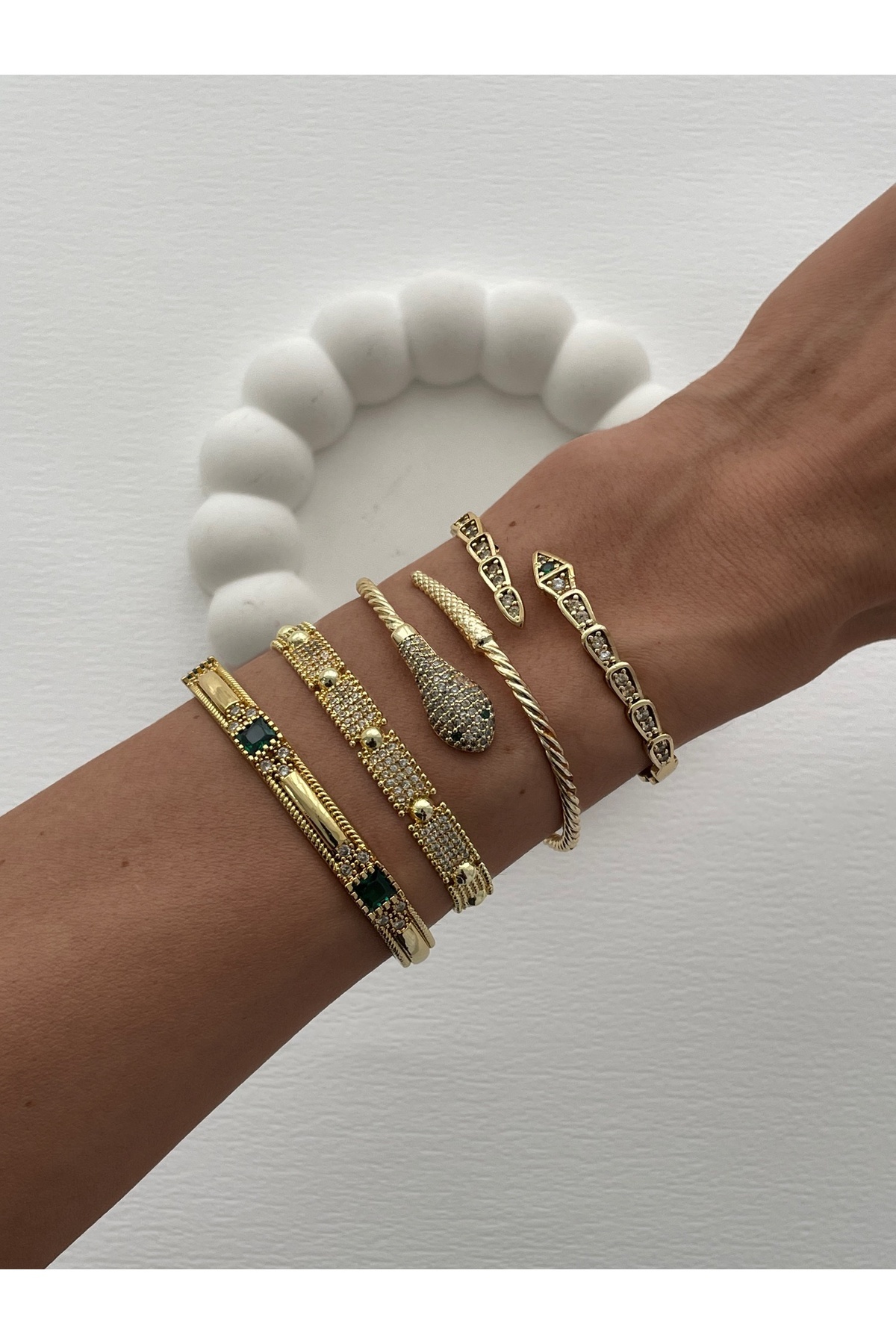 Özel Seri Zirkon Taş Yılan Tasarım Ayarlanabilir Gold Bileklik Özel Seri Zirkon Taş Yılan Tasarım Ayarlanabilir Gold Bileklik LP-4706 تک سایز