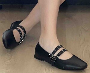 Kadın Siyah Çift Tokalı Hakiki Deri Yazlık Babet Ayakkabı 25SFD270618 Kadın Siyah Çift Tokalı Hakiki Deri Yazlık Babet Ayakkabı 25SFD270618 41