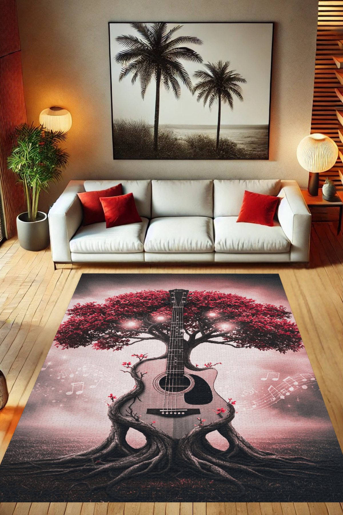 Kırmızı Gitar Figürlü Halı Ağaç Desenli Halı Müzik Temalı Halı Dokuma Tabanlı Halı Genç Odası Halısı Kırmızı Gitar Figürlü Halı Ağaç Desenli Halı Müzik Temalı Halı Dokuma Tabanlı Halı Genç Odası Halısı MZ001 200 x 300
