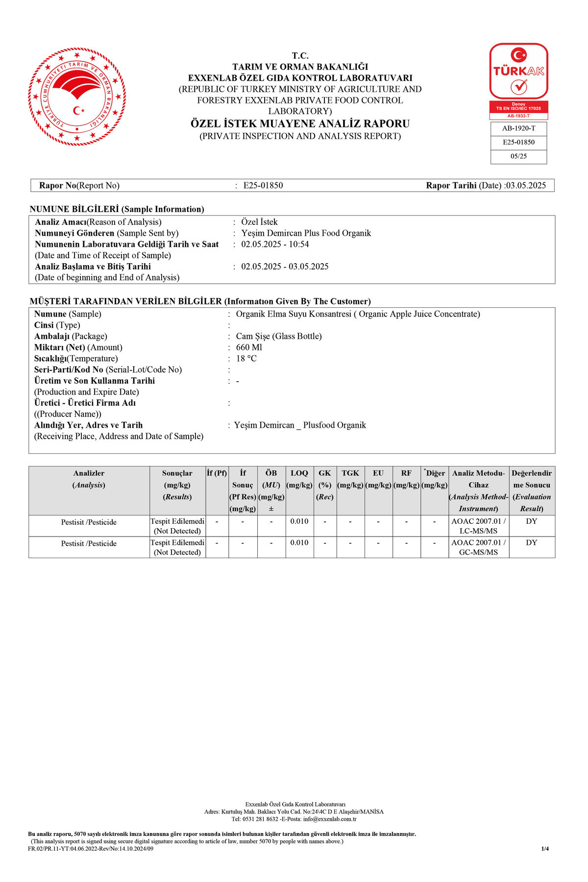 Organik Elma Suyu Konsantresi 1330 G X 2 Adet (ANALİZLİ - KATKI VE KORUYUCU İÇERMEZ) Organik Elma Suyu Konsantresi 1330 G X 2 Adet (ANALİZLİ - KATKI VE KORUYUCU İÇERMEZ) 01ESK25 تک سایز