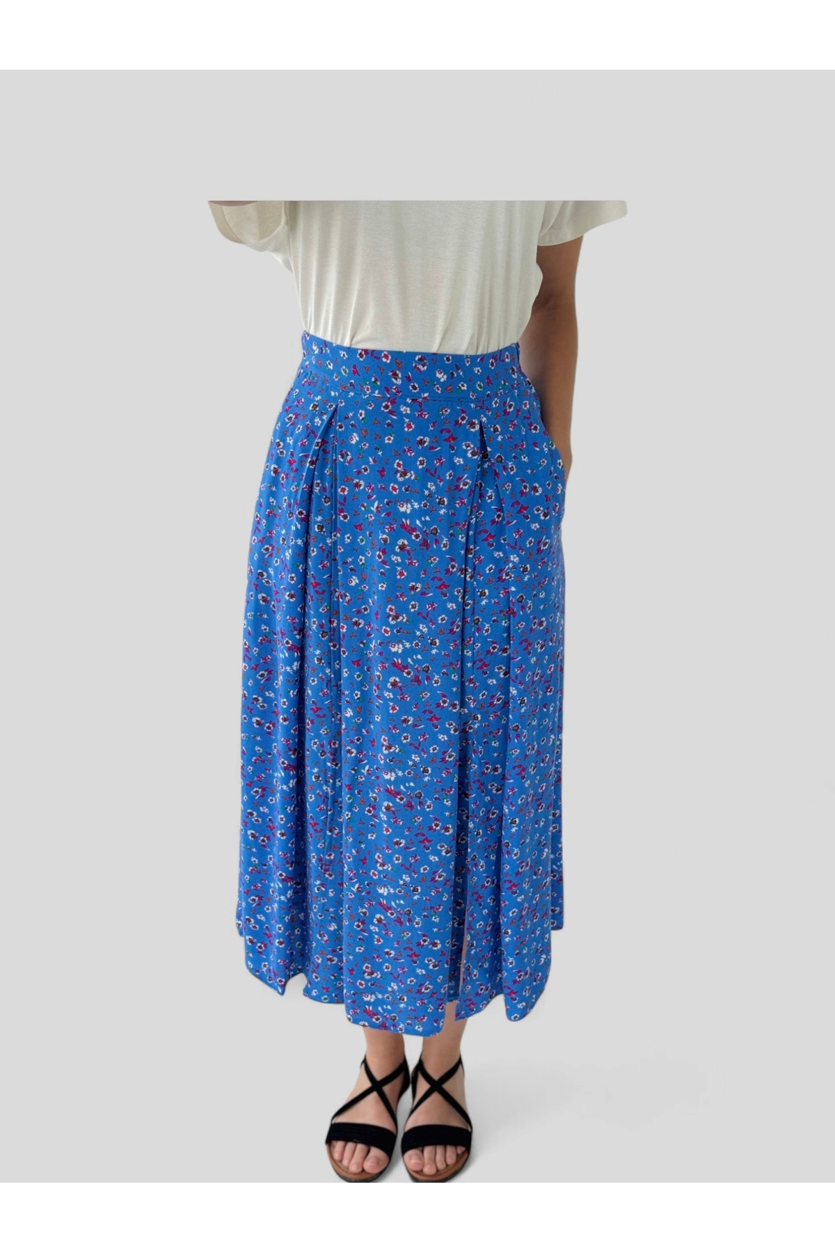Yüksek Bel Yırtmaçlı Midi Boy Etek Kadın Mavi Yüksek Bel Yırtmaçlı Midi Boy Etek Kadın Mavi RBKETK110 L
