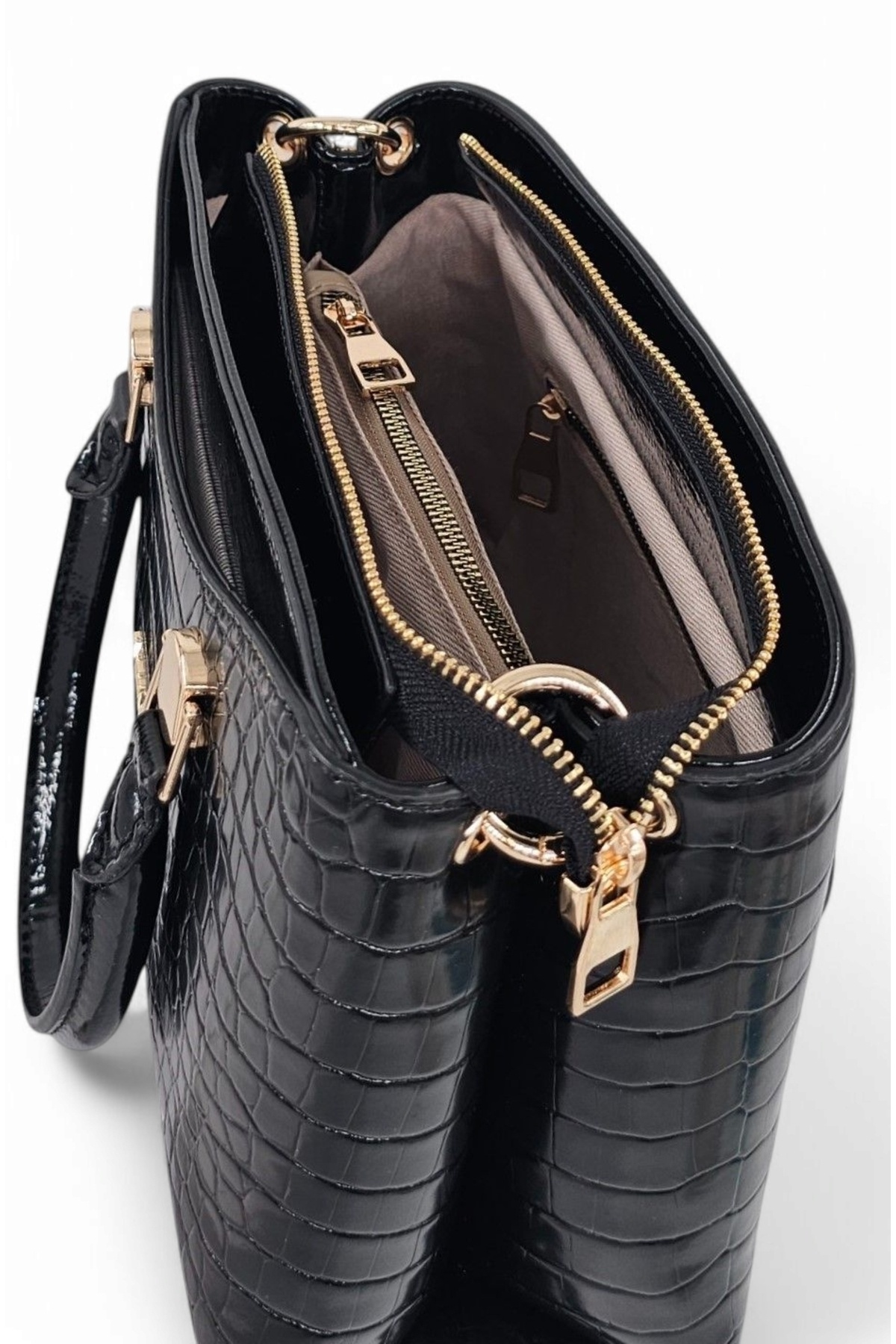 Siyah Kroko Desenli Cep Detaylı Omuz Askılı Kadın El Çantası Siyah Kroko Desenli Cep Detaylı Omuz Askılı Kadın El Çantası E-4630 Küçük Boy