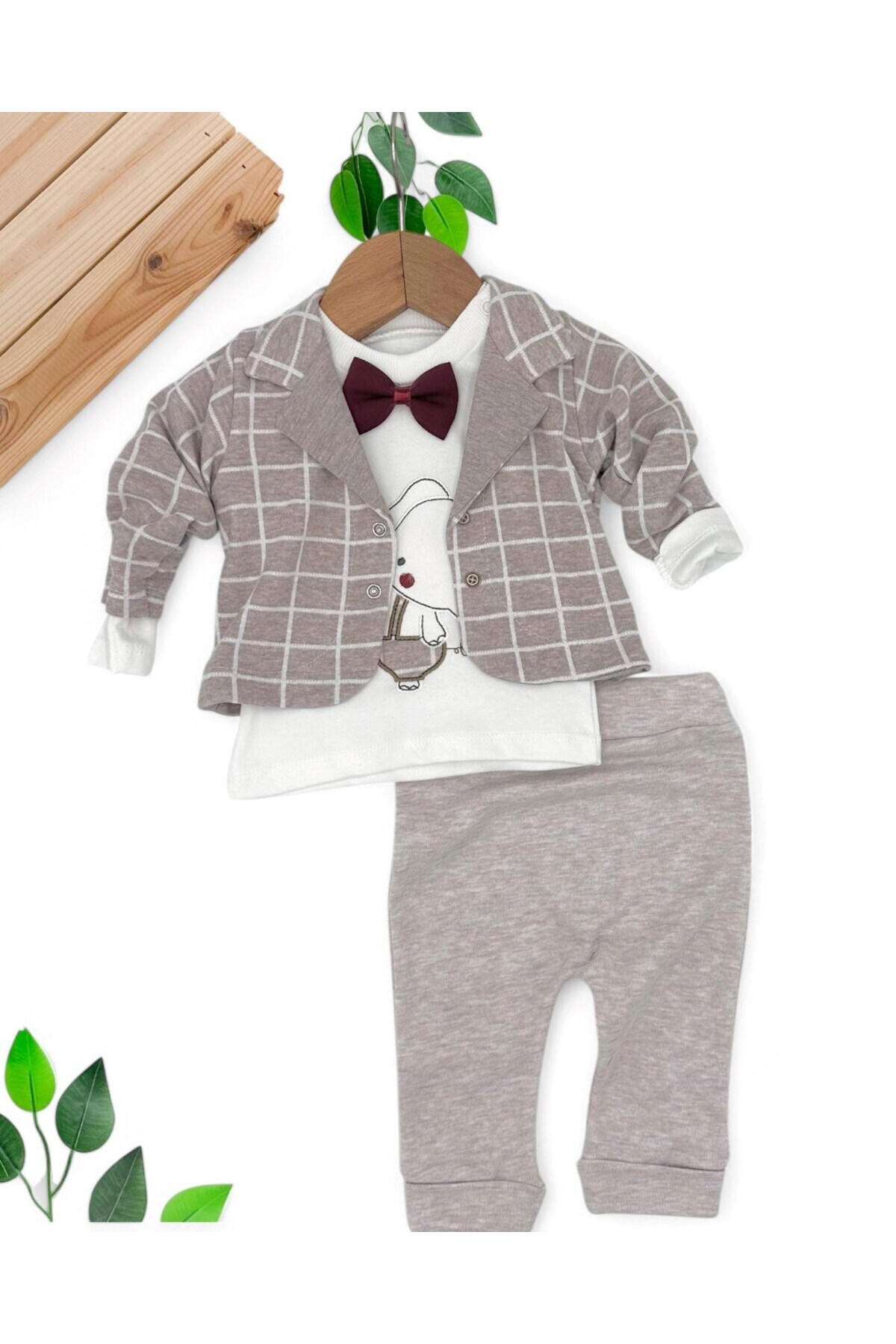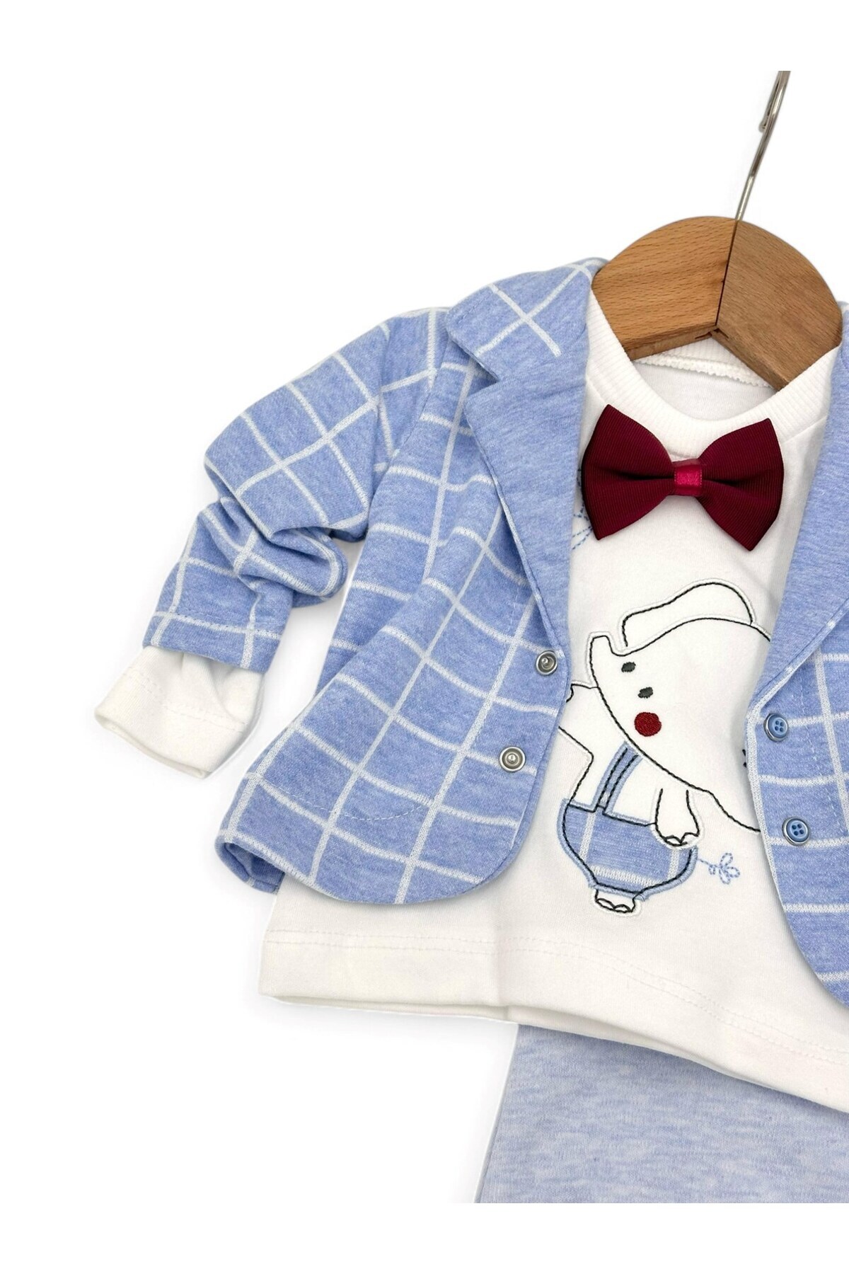 ERKEK BEBEK EKOSELİ CEKETLİ PAPYONLU 3 PARÇA BAYRAMLIK YENİ DOĞAN BEBEK TAKIMI ERKEK BEBEK EKOSELİ CEKETLİ PAPYONLU 3 PARÇA BAYRAMLIK YENİ DOĞAN BEBEK TAKIMI R1633-tyx 6-9 AY