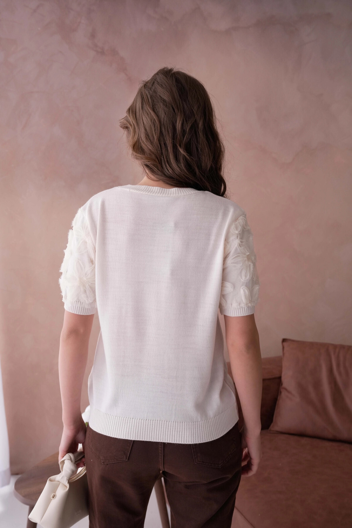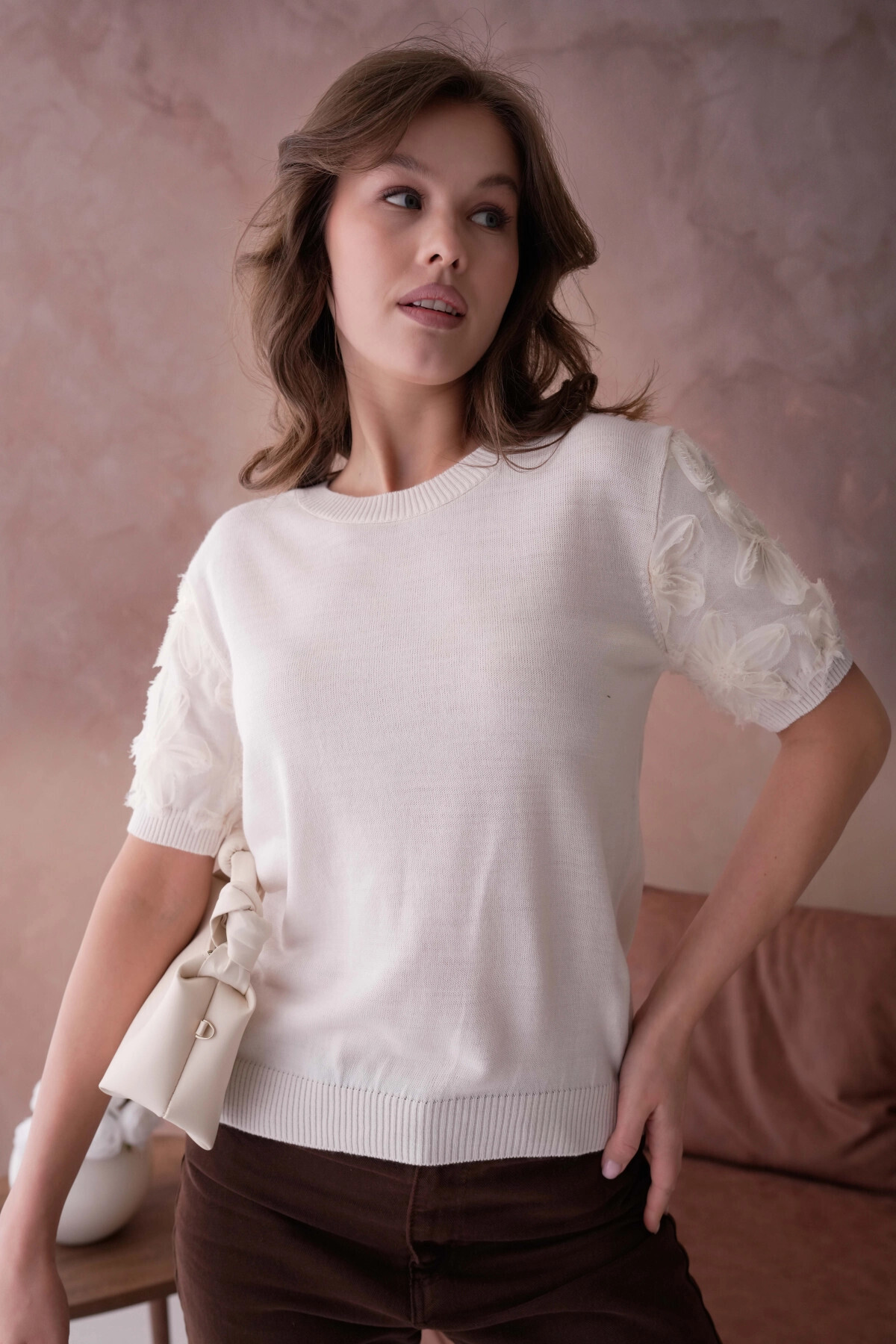 Bisiklet Yaka Kolu Tül Detaylı Triko Bluz Bisiklet Yaka Kolu Tül Detaylı Triko Bluz 12110 Standart