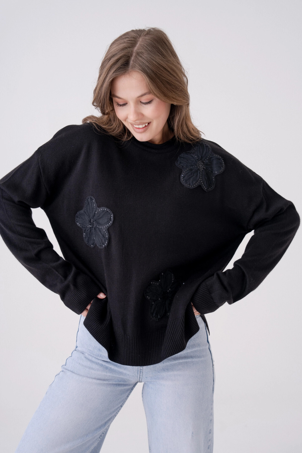 Bisiklet Yaka Tül Detaylı Triko Kazak Bisiklet Yaka Tül Detaylı Triko Kazak 12094 Standart