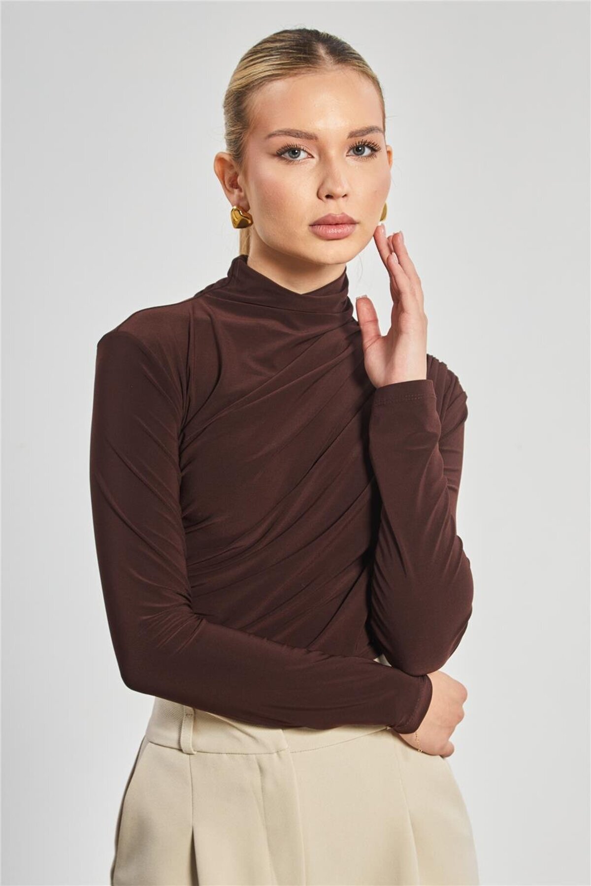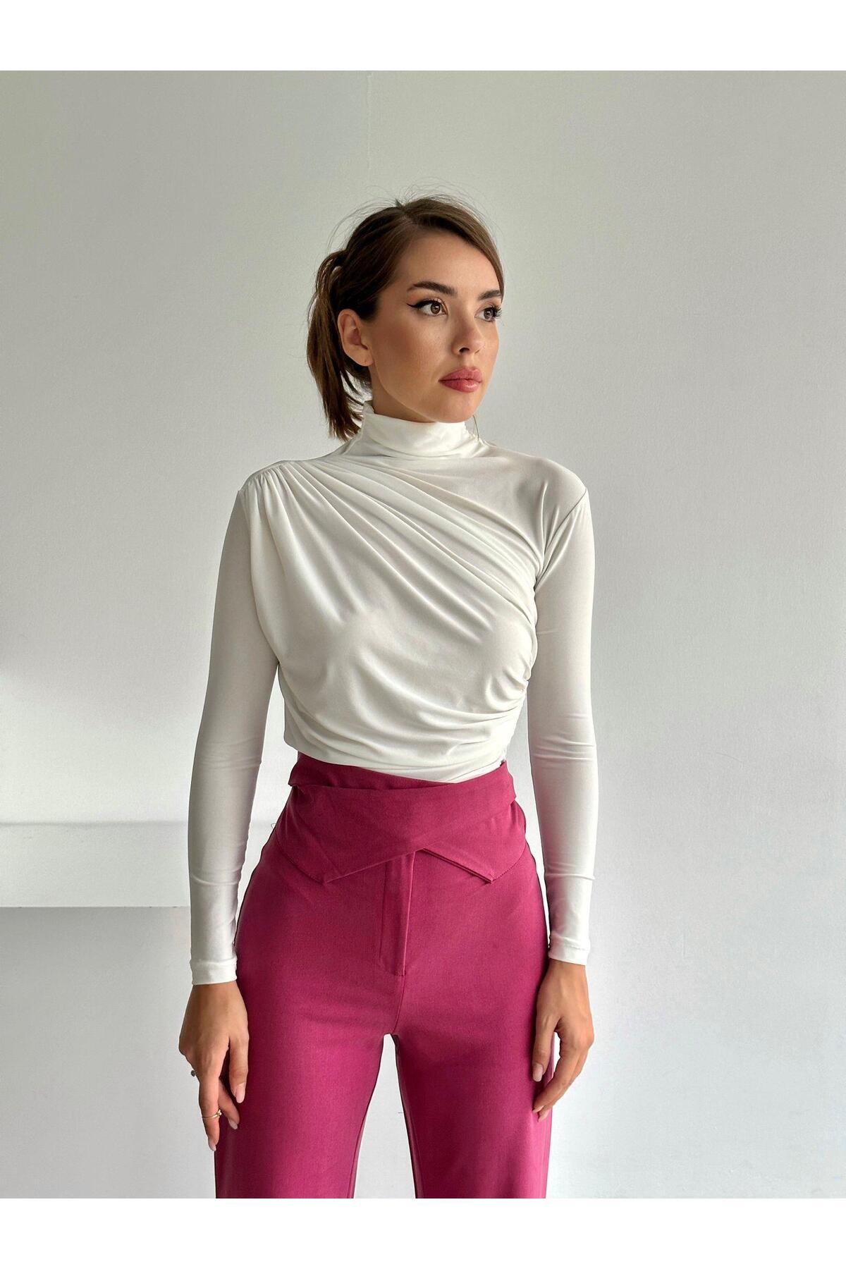 Kadın Bluz - Drape Detaylı Dökümlü Balıkçı Yaka Şık Bluz Kadın Bluz - Drape Detaylı Dökümlü Balıkçı Yaka Şık Bluz UBM-B-001192 L