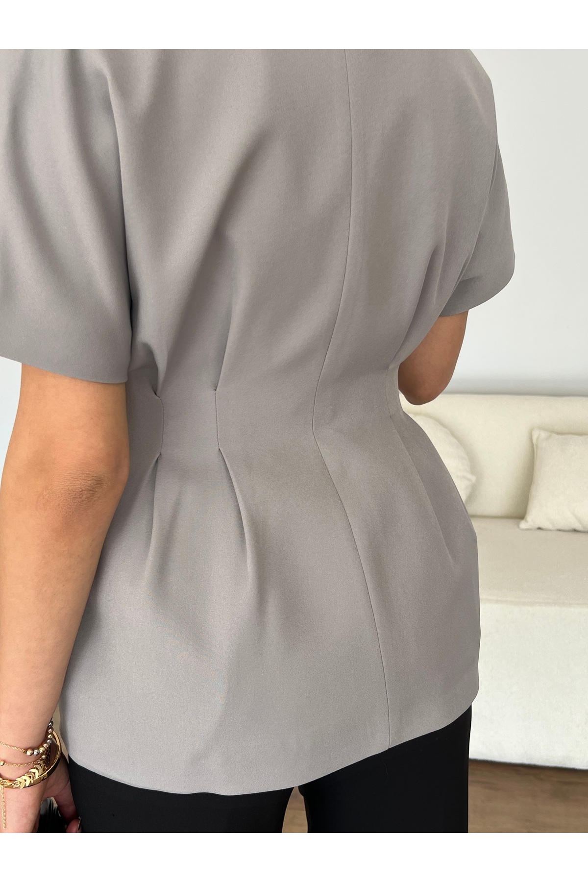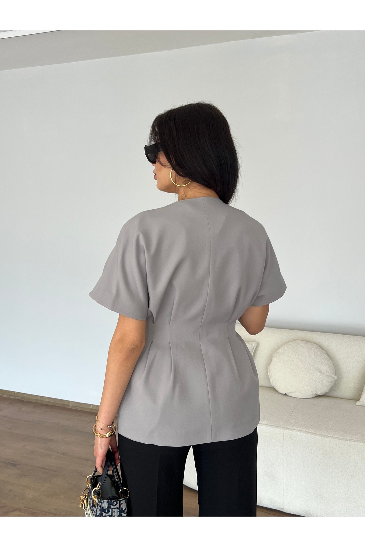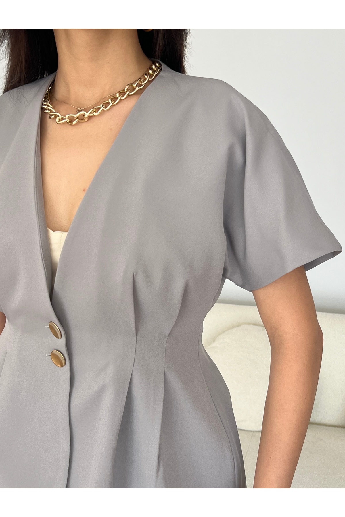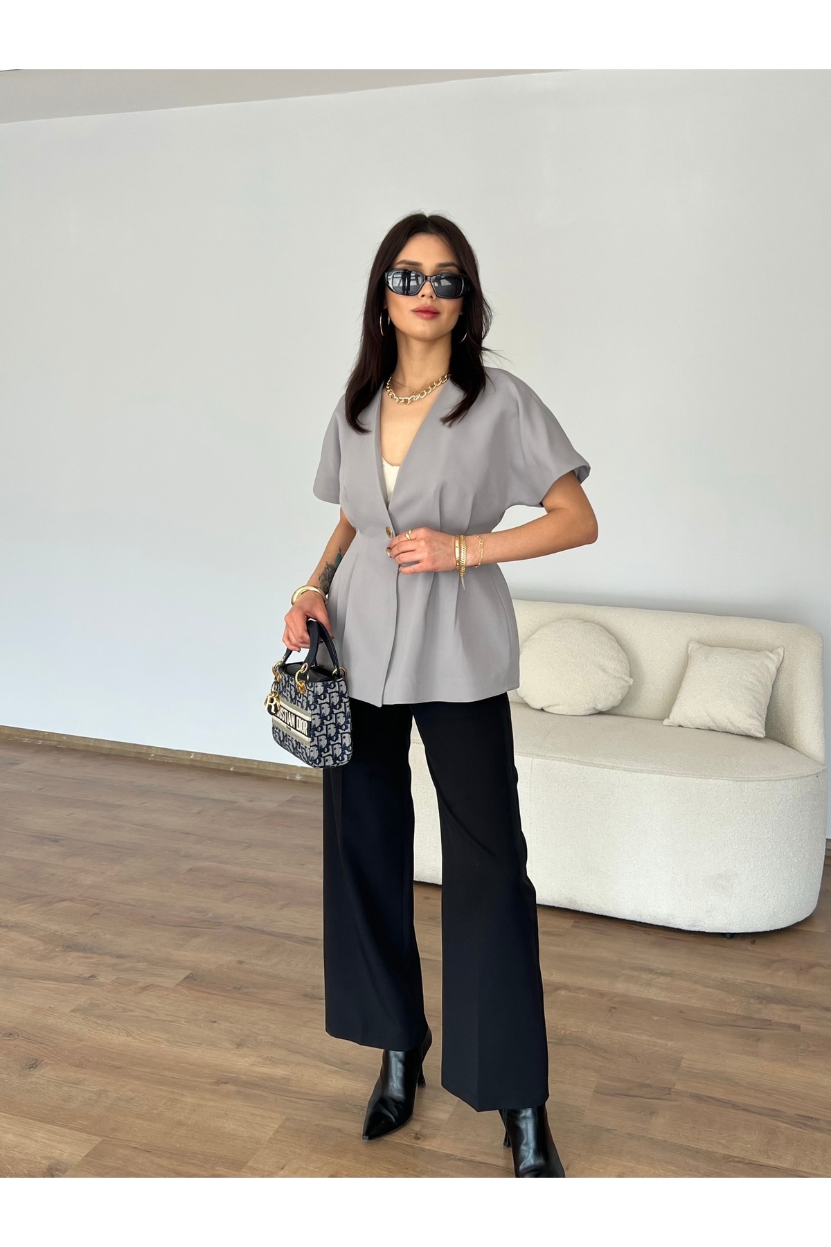 Belden Oturtmalı Kısa Kol Düğmeli Kadın Ceket Belden Oturtmalı Kısa Kol Düğmeli Kadın Ceket EU8061 XL