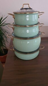 Vintage Emaye Güveç 8 Parça Tencere Seti Su Yeşili Vintage Emaye Güveç 8 Parça Tencere Seti Su Yeşili EMY2452 تک سایز
