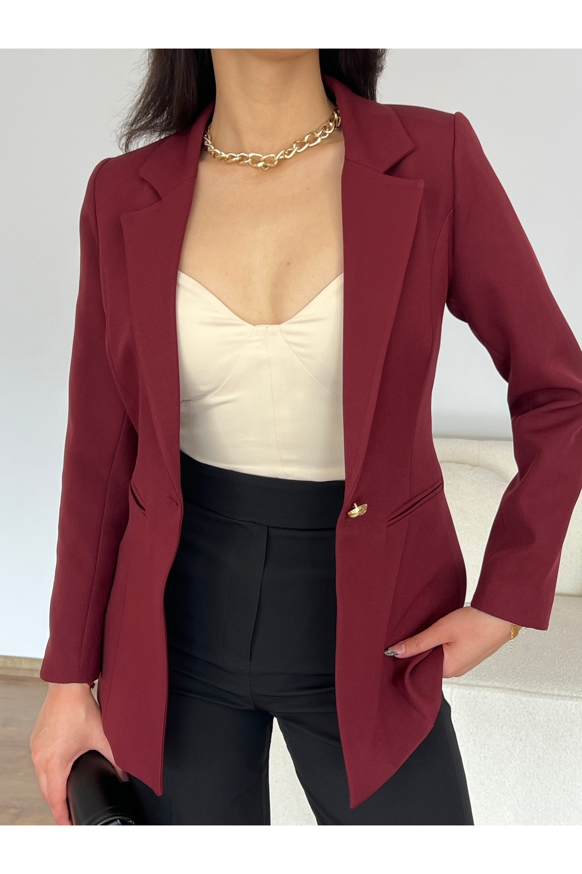 Fletolu Astarlı Slim Blazer Ceket Fletolu Astarlı Slim Blazer Ceket EU8063 XL