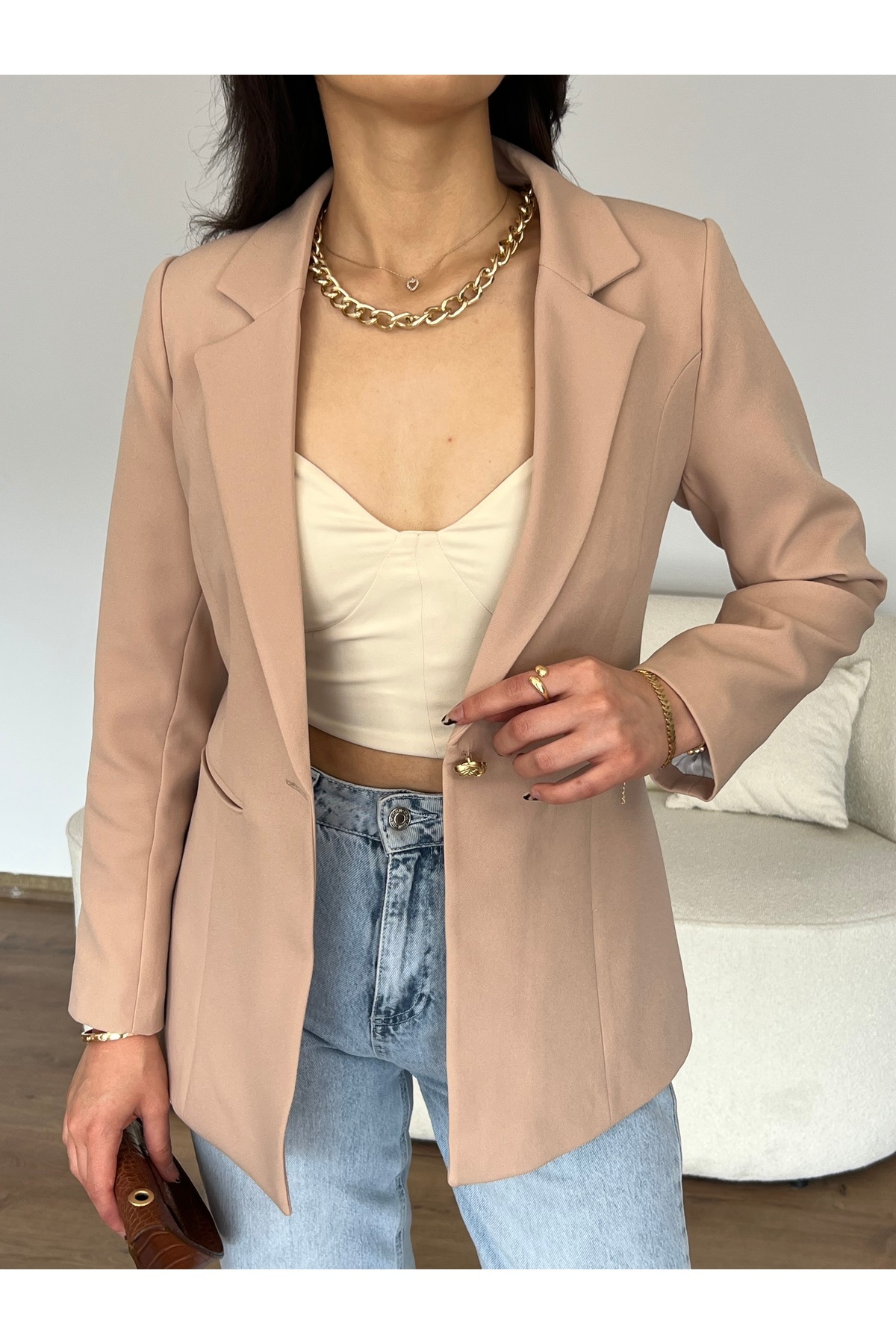 Fletolu Astarlı Slim Blazer Ceket Fletolu Astarlı Slim Blazer Ceket EU8063 XL