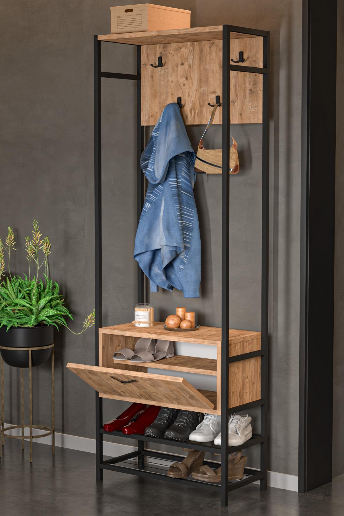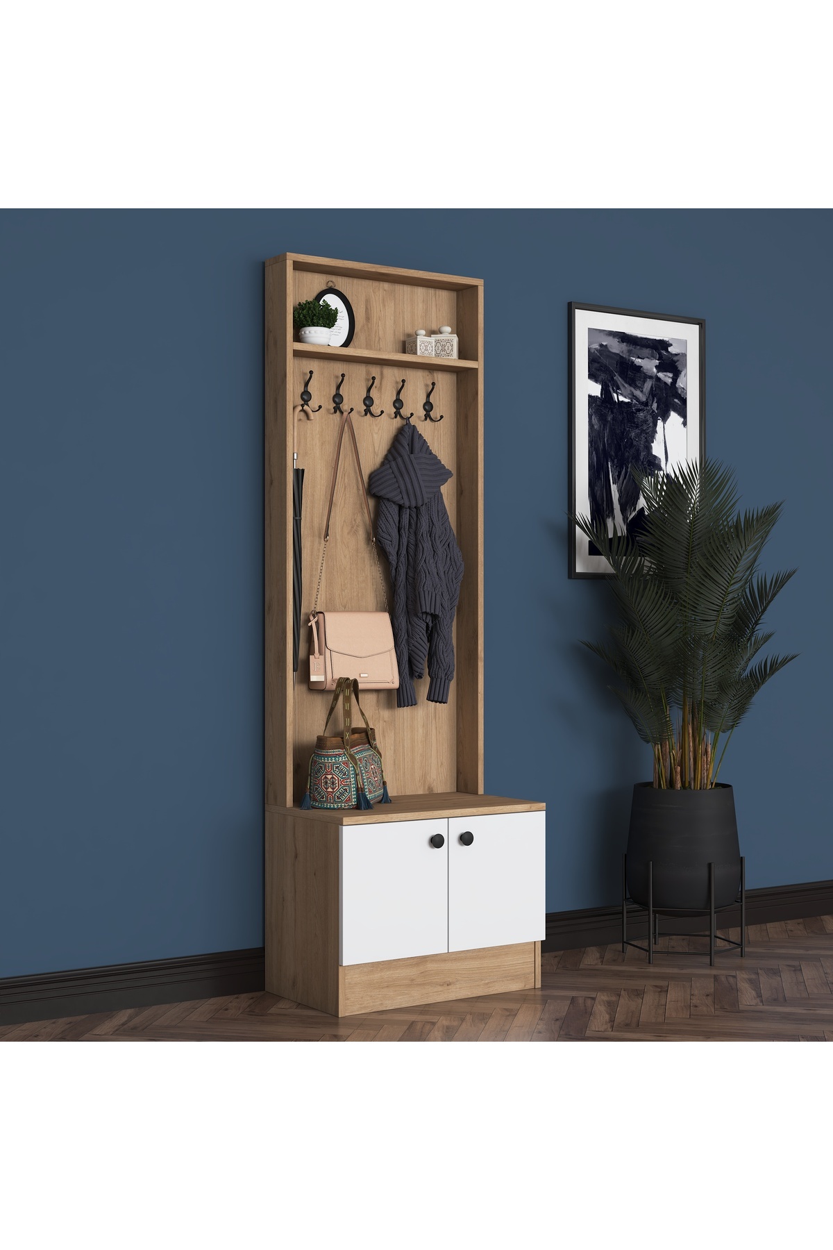 Rani P6 Modern Kapaklı Askılı Raflı Portmanto Vestiyer Sepet Ceviz - Beyaz M16 Rani P6 Modern Kapaklı Askılı Raflı Portmanto Vestiyer Sepet Ceviz - Beyaz M16 2254 تک سایز
